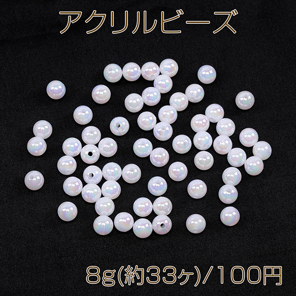 アクリルビーズ オーロラビーズ 丸玉 8mm ホワイト 8g(約33ヶ)