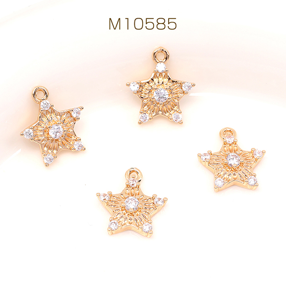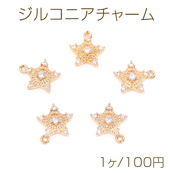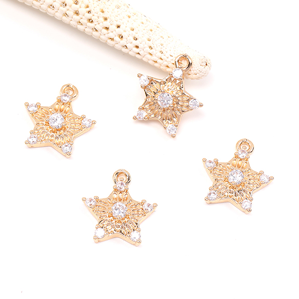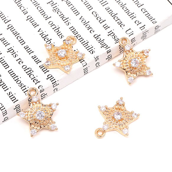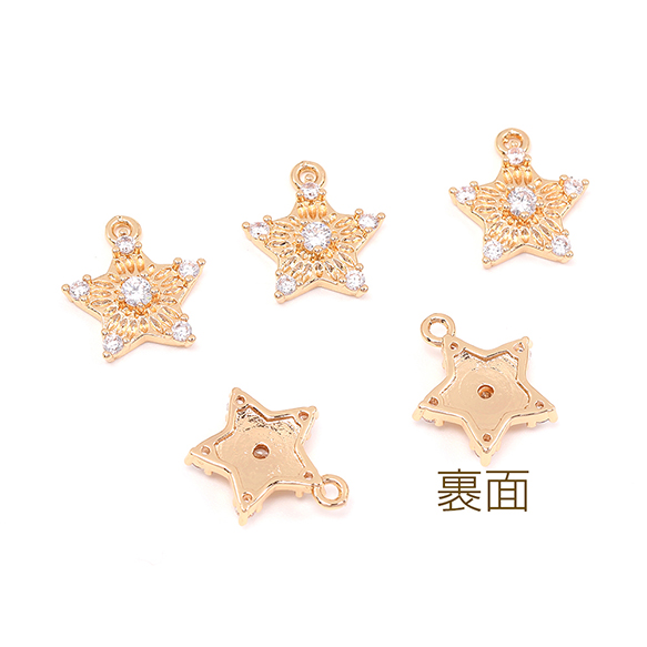 高品質ジルコニアチャーム 星形 1カン 14×16mm ゴールド(1ヶ)