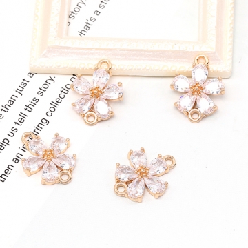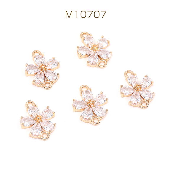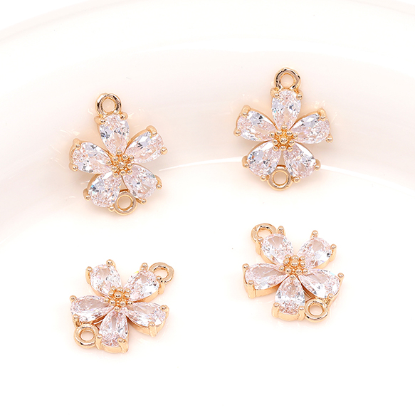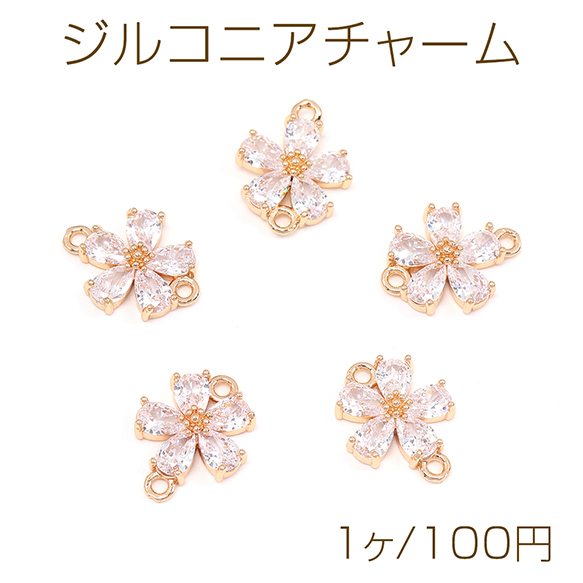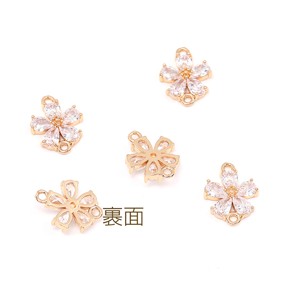 高品質ジルコニアチャーム フラワー 2カン 13×17mm ゴールド(1ヶ)