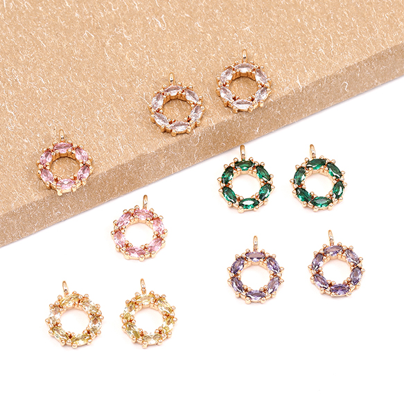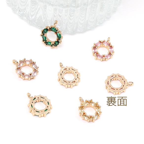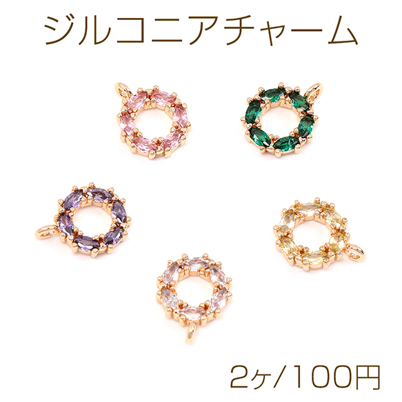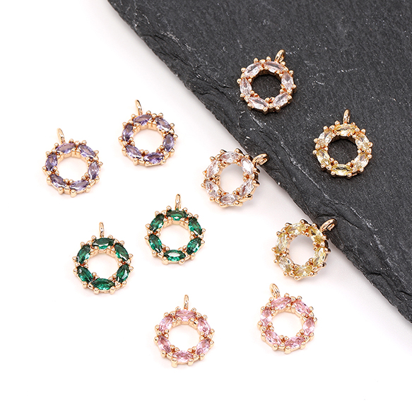 高品質ジルコニアチャーム サークル 1カン 10.5×13.5mm ゴールド(2ヶ)