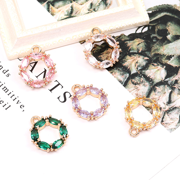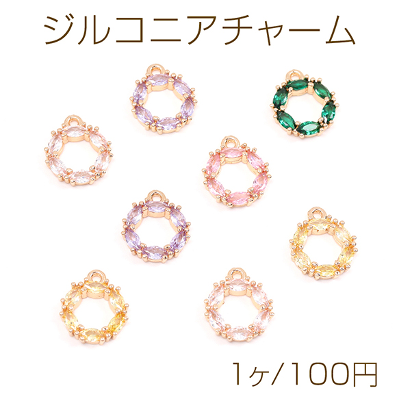 高品質ジルコニアチャーム サークル 1カン 12.5×15mm ゴールド(1ヶ)