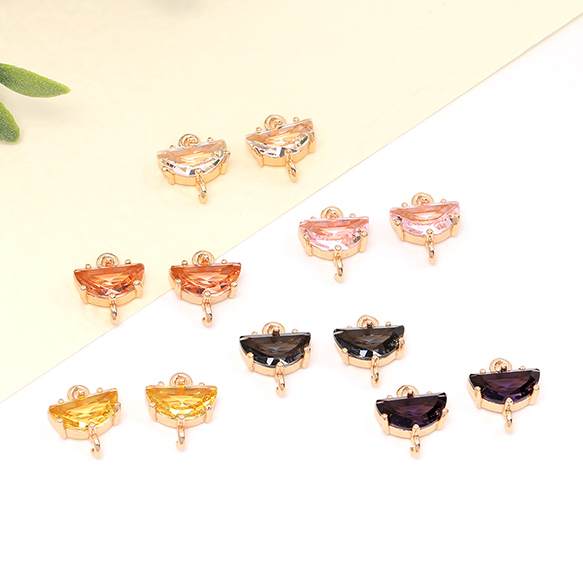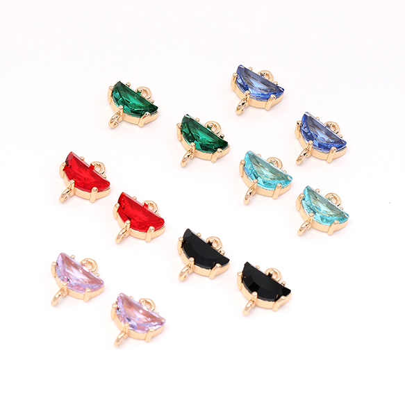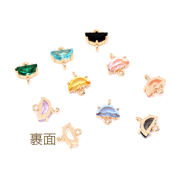 高品質フレームガラスチャーム 半円 2カン 10×11mm ゴールド(2ヶ)