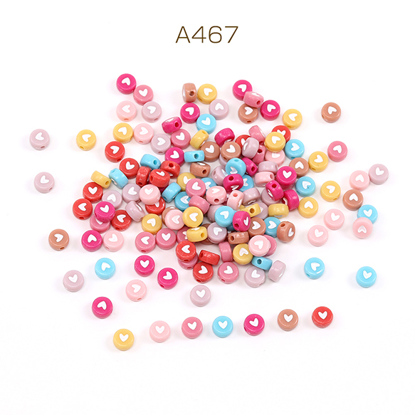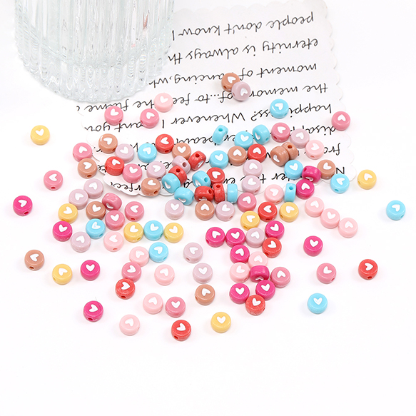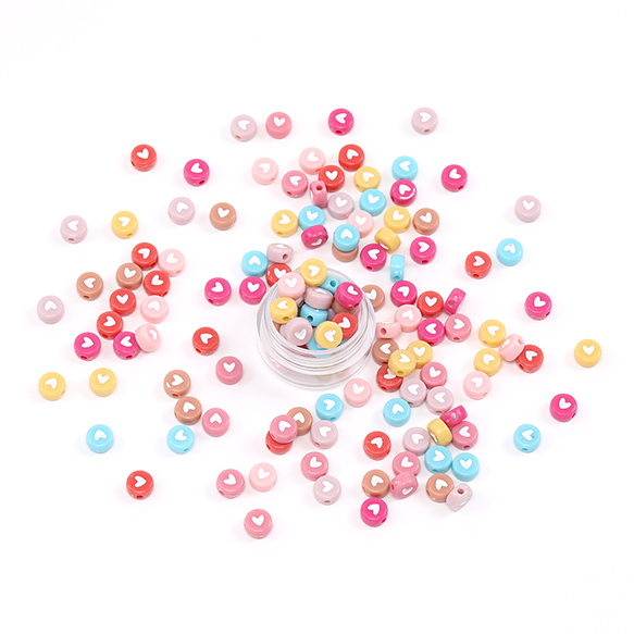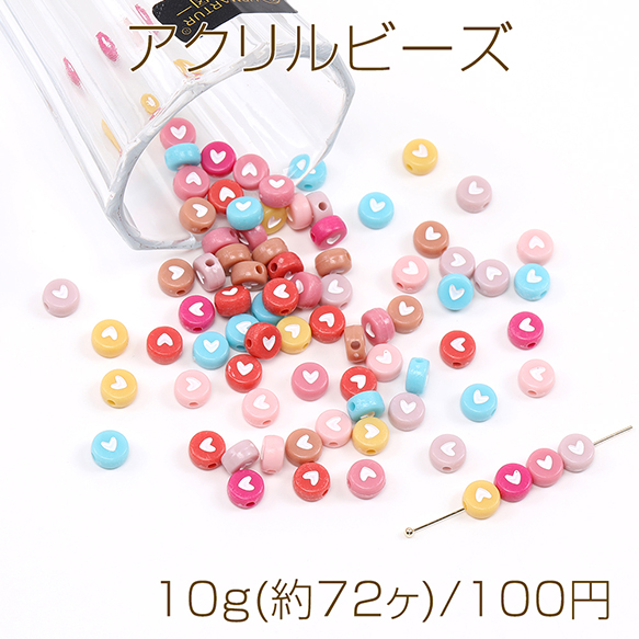 アクリルビーズ コイン型 ハート型 7mm ミックスカラー 10g(約72ヶ)