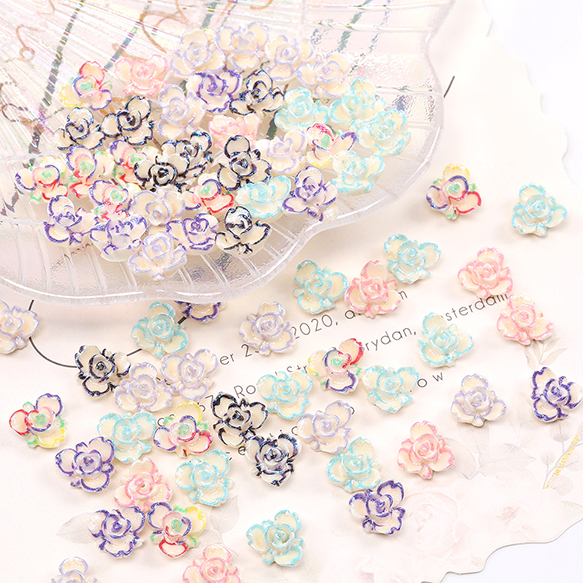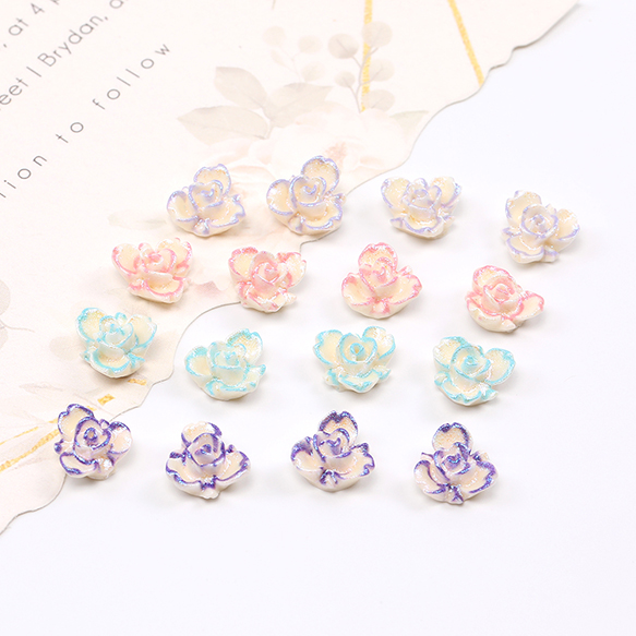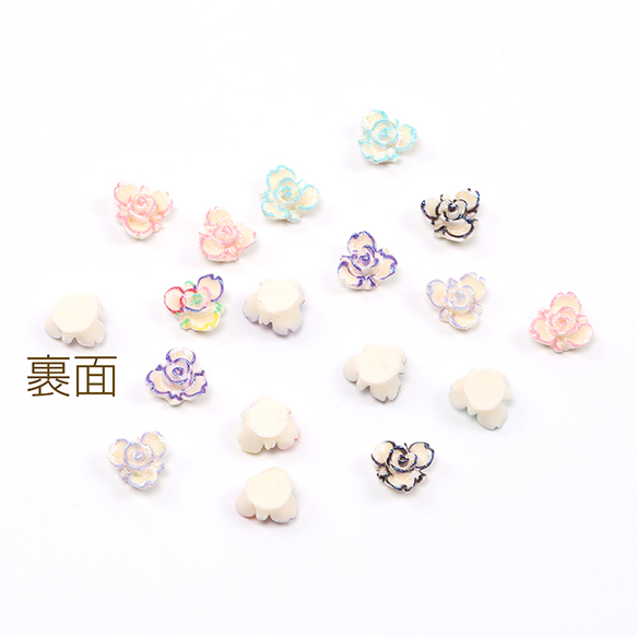 樹脂貼付けパーツ 樹脂カボション フラワー 10mm オーロラカラー(30ヶ)