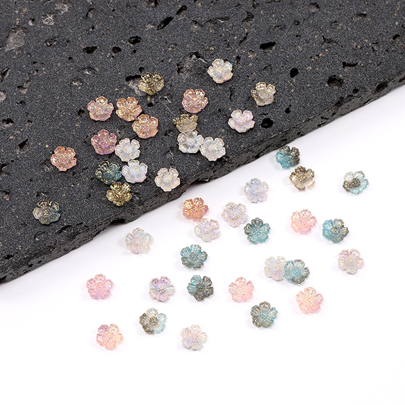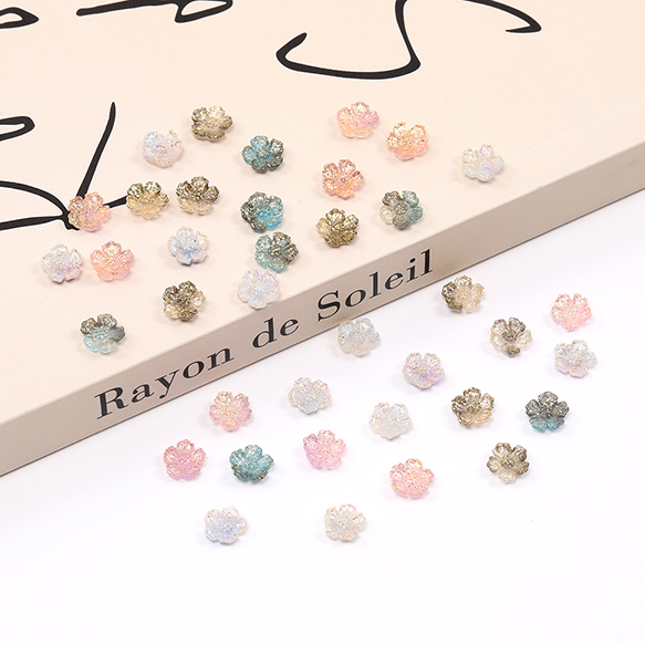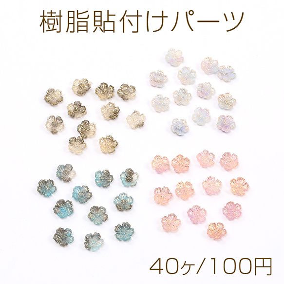 樹脂貼付けパーツ 樹脂カボション フラワー 7.5mm グラデーションカラー(40ヶ)