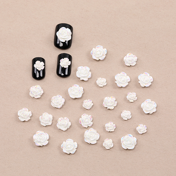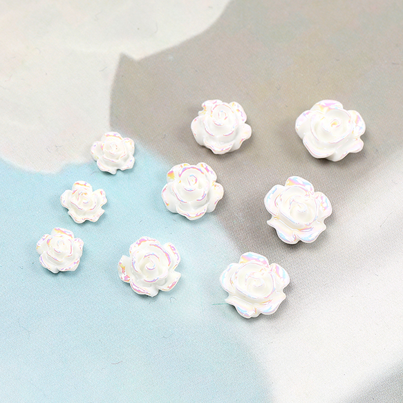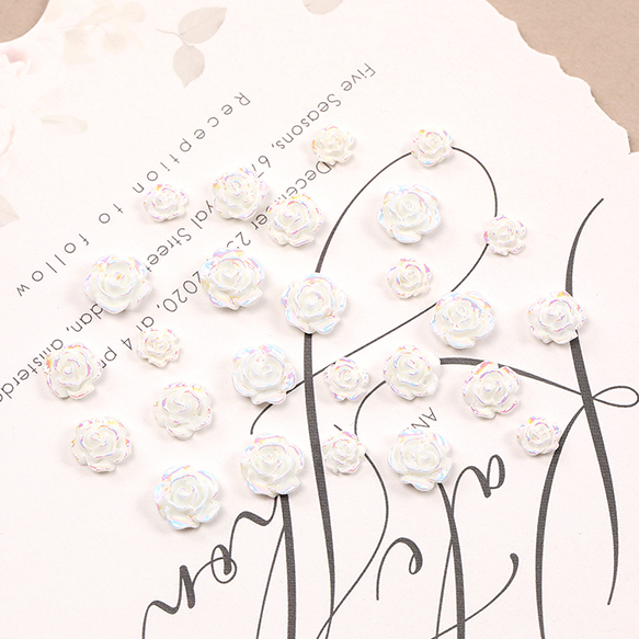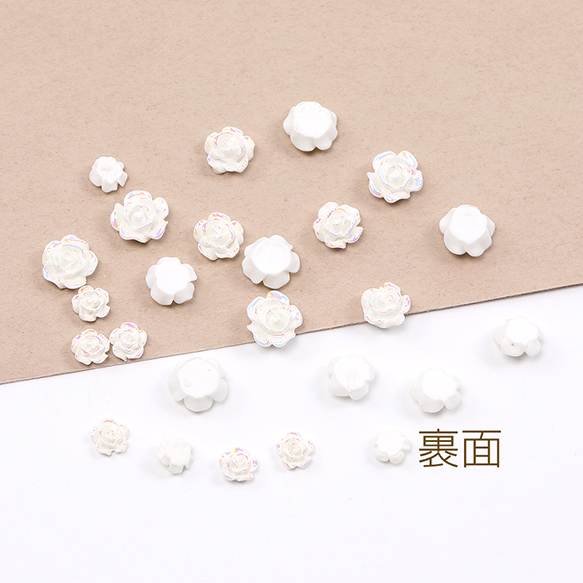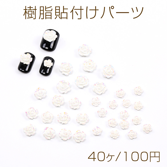 樹脂貼付けパーツ 樹脂カボション フラワー オーロラホワイト(40ヶ)