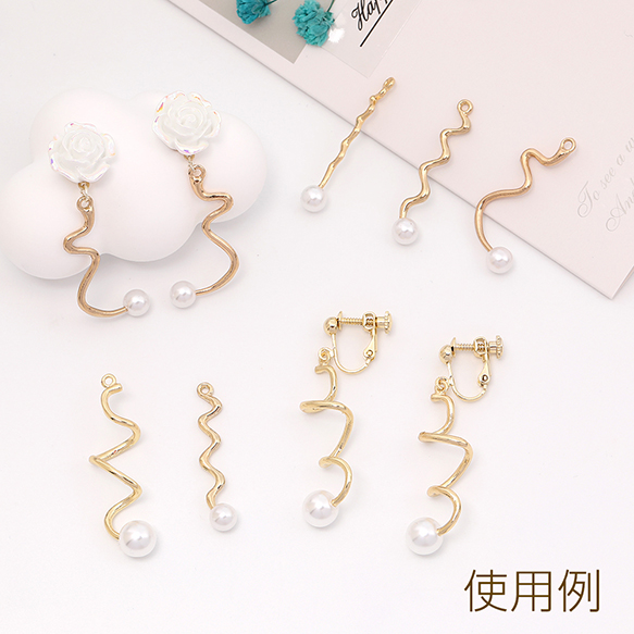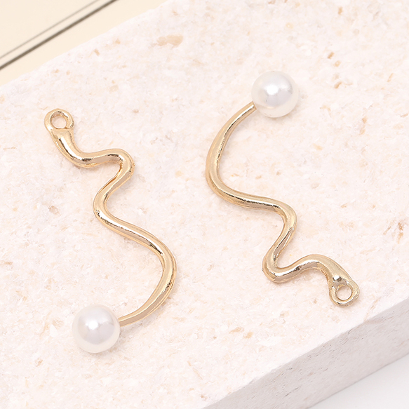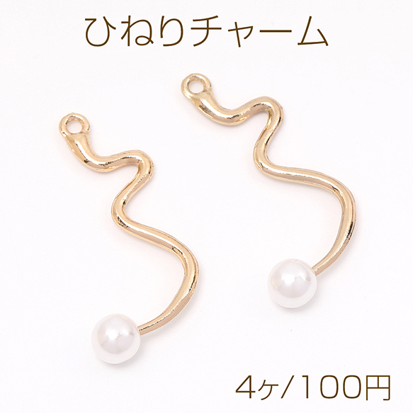 ひねりチャーム スティックチャーム パール付きチャーム 1カン 6×34mm ゴールド(4ヶ)
