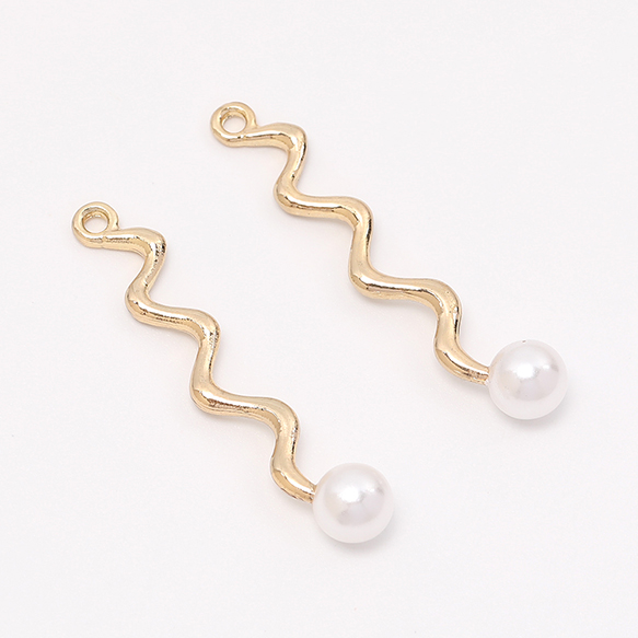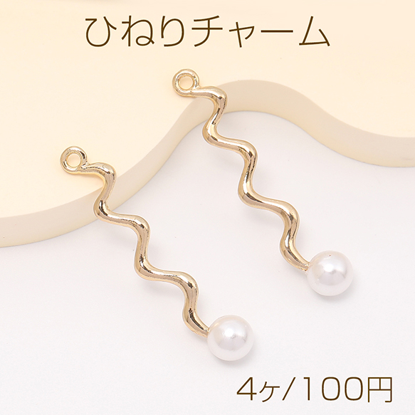 ひねりチャーム スティックチャーム パール付きチャーム 1カン 6×35mm ゴールド(4ヶ)
