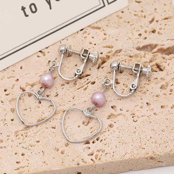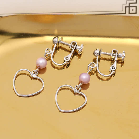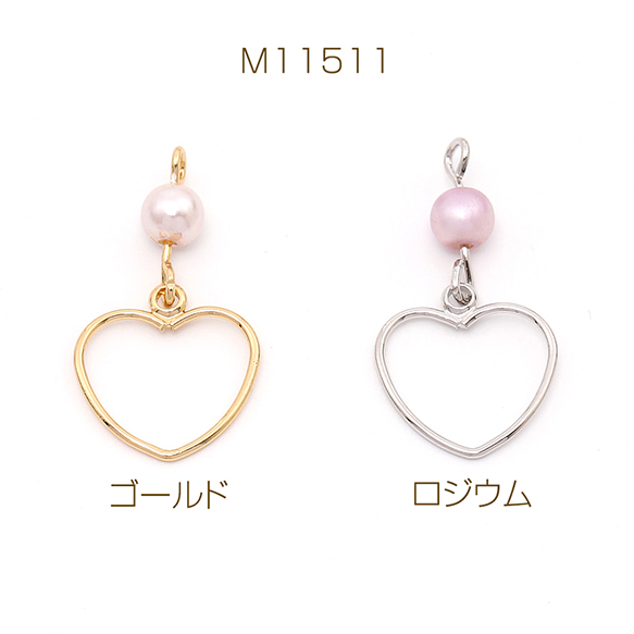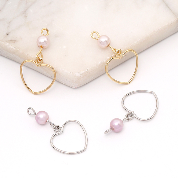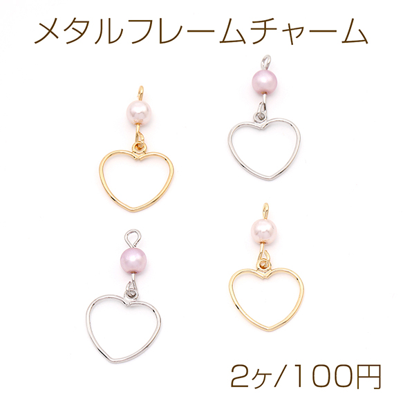 メタルフレームチャーム ハート型 パール付き 1カン 14.5×27mm(2ヶ)