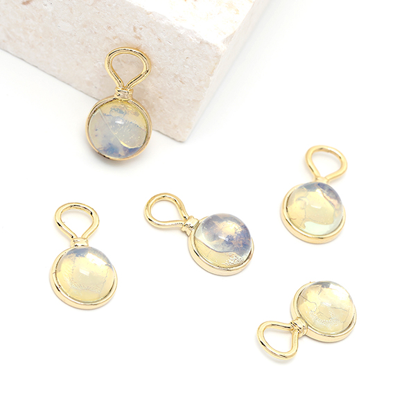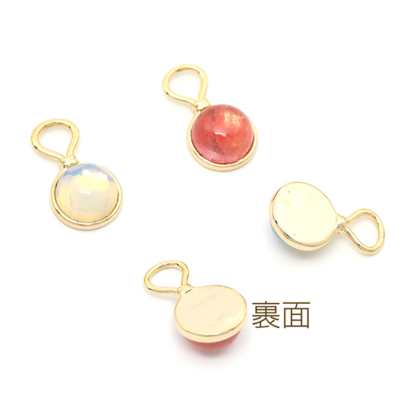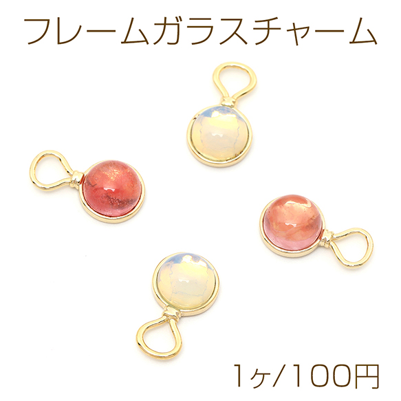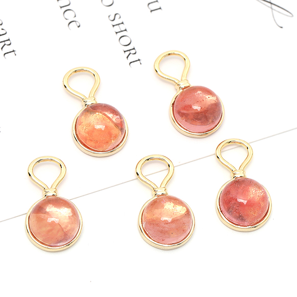 色褪せにくい14KGPゴールドメッキ 高品質フレームガラスチャーム 天然石チャーム ラウンド 1カン 9×16.5mm(1ヶ)
