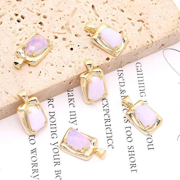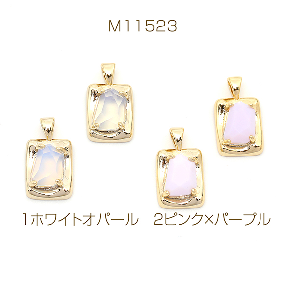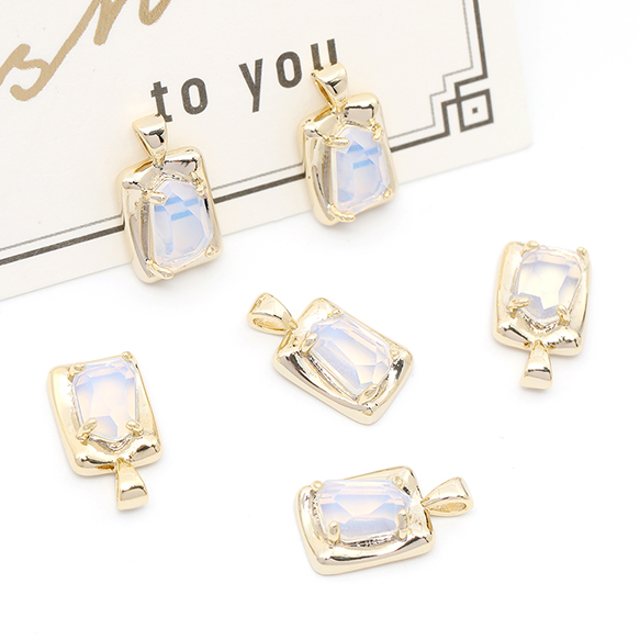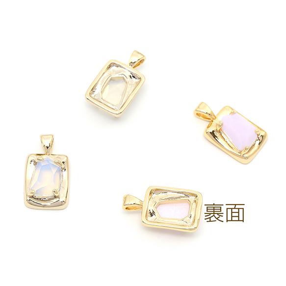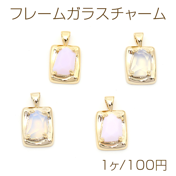 色褪せにくい14KGPゴールドメッキ 高品質フレームガラスチャーム 長方形型 1カン 9.5×17mm(1ヶ)