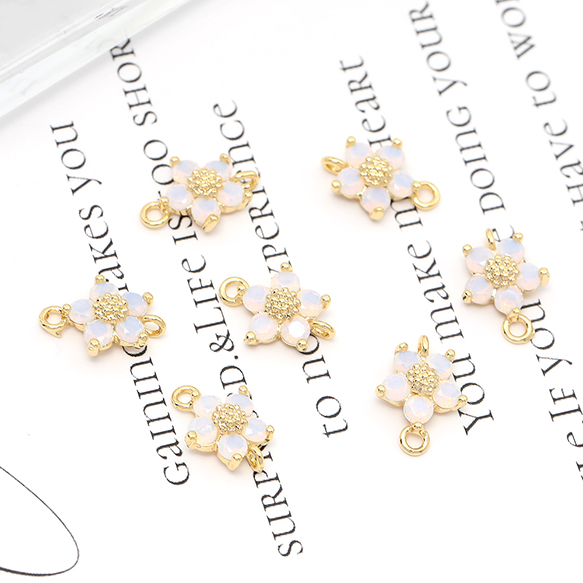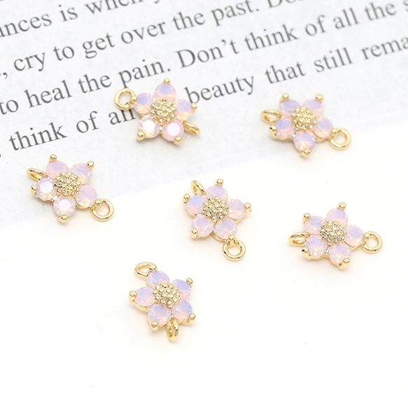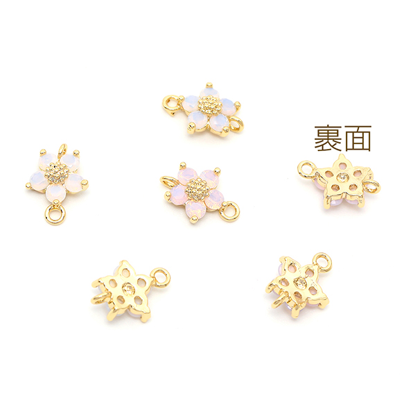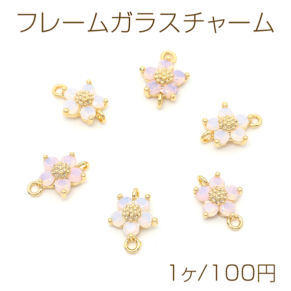 色褪せにくい14KGPゴールドメッキ 高品質フレームガラスチャーム コネクターチャーム フラワー 桜 2カン 8×11mm(1ヶ)