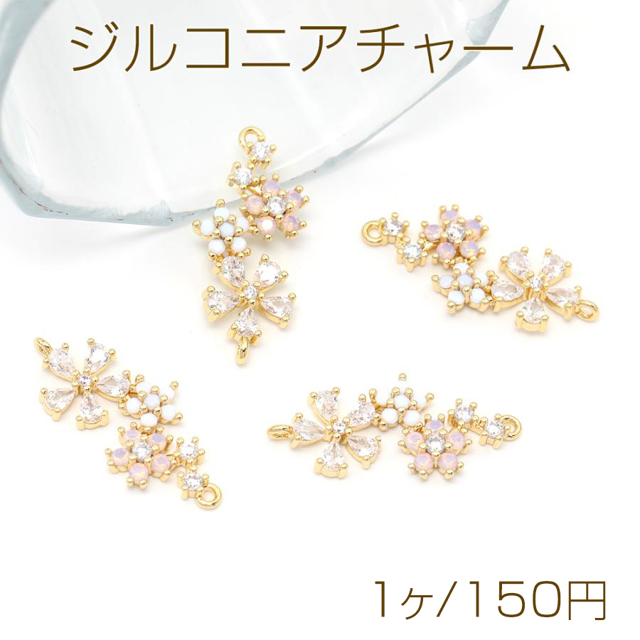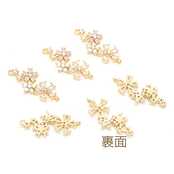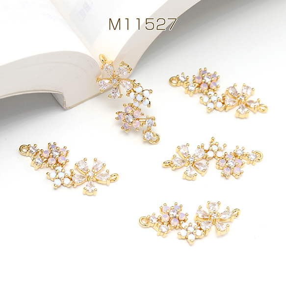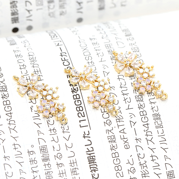 色褪せにくい14KGPゴールドメッキ 高品質ジルコニアチャーム コネクターチャーム フラワー 2カン 10×23mm(1ヶ)