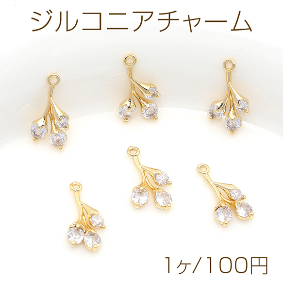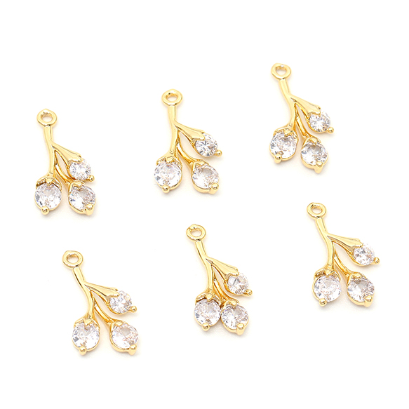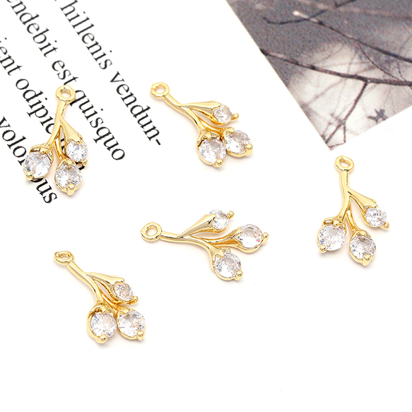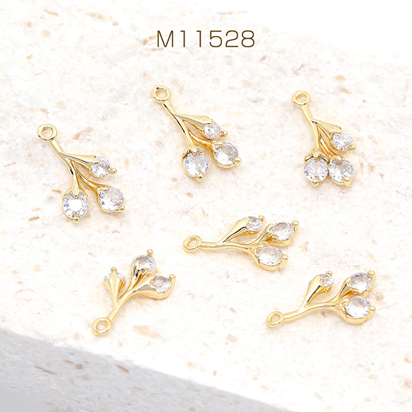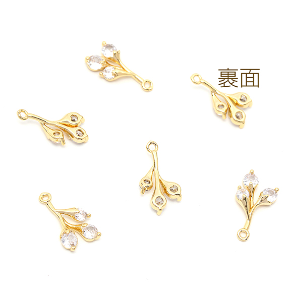 色褪せにくい14KGPゴールドメッキ 高品質ジルコニアチャーム 枝 1カン 8×15mm(1ヶ)