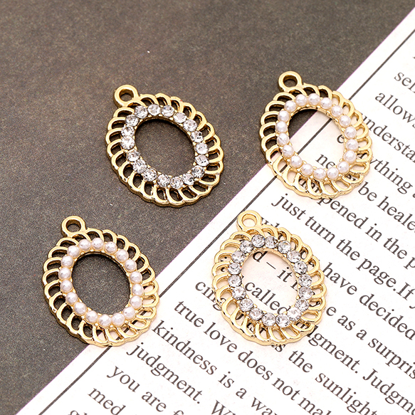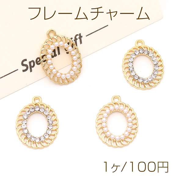 色褪せにくい14KGPゴールドメッキ フレームチャーム チェーンオーバルチャーム 1カン 16×22mm(1ヶ)