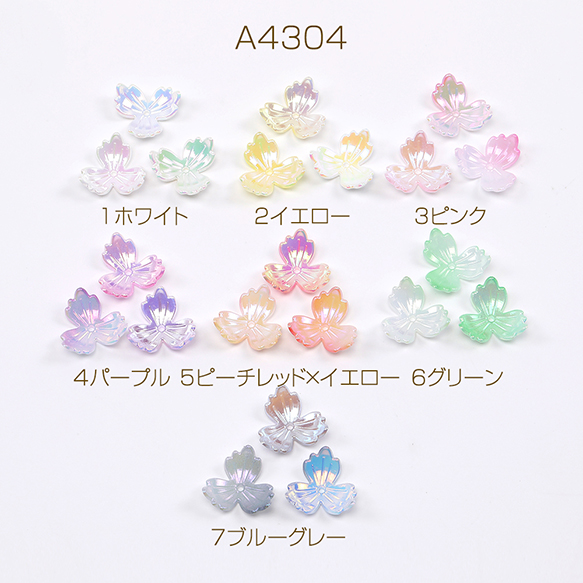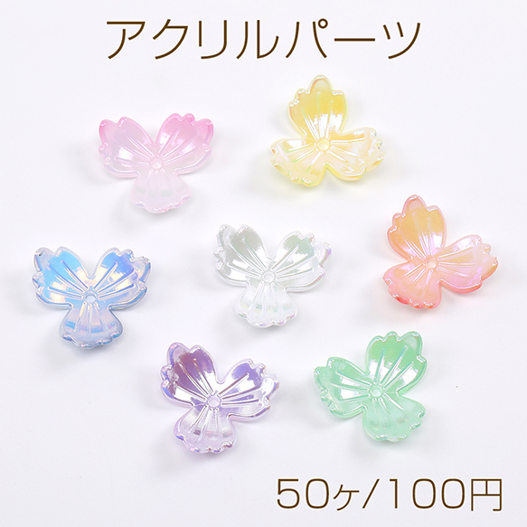 アクリルパーツ フラワー 三弁花 21.5mm グラデーションオーロラカラー(50ヶ)