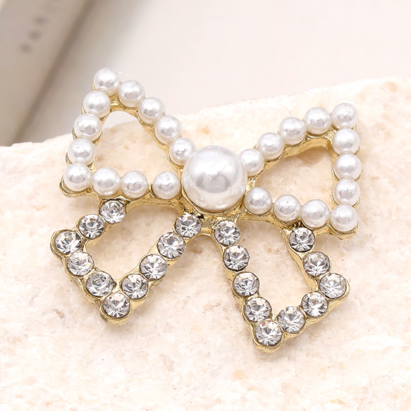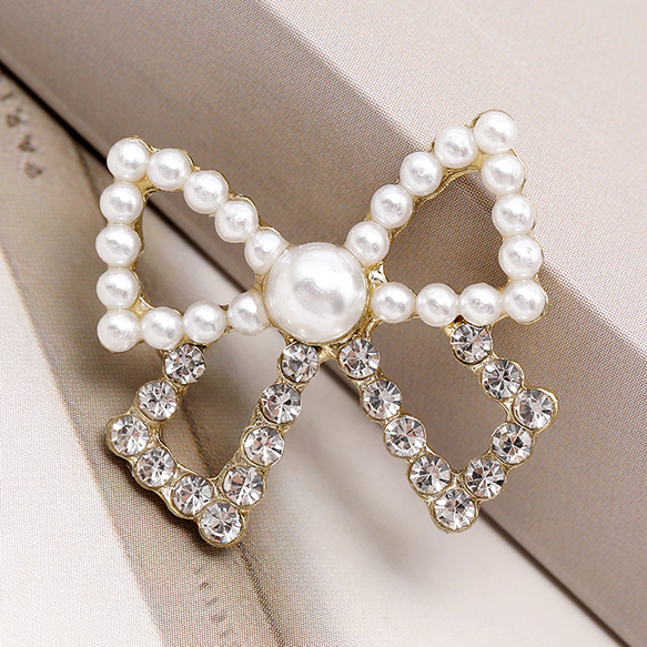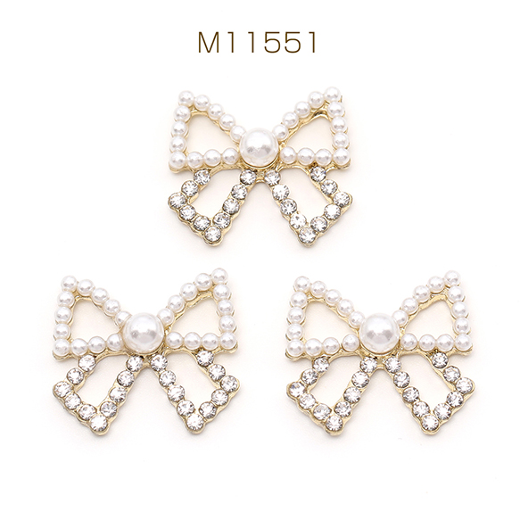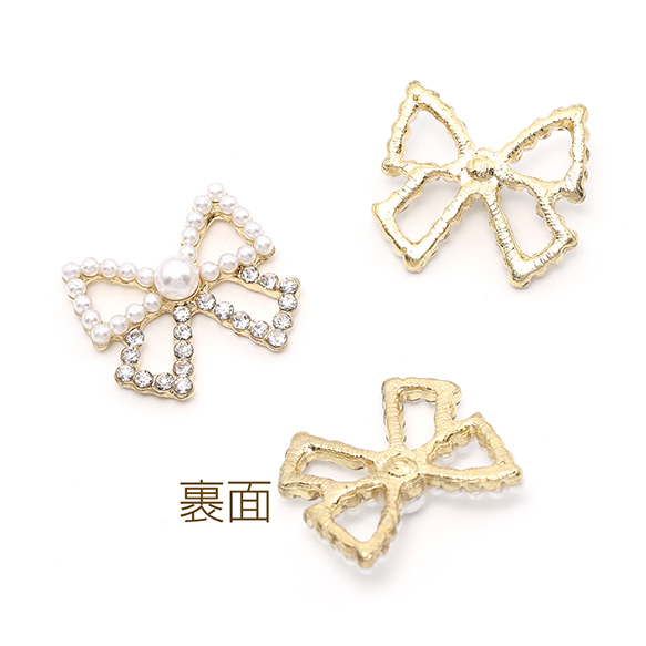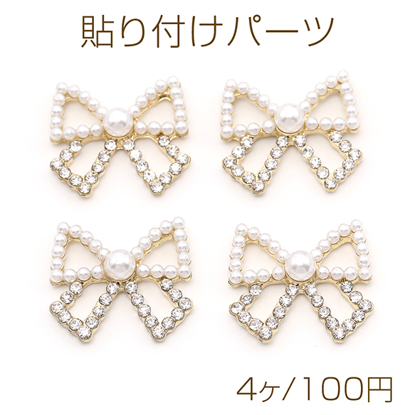 貼り付けパーツ ラインストーン&パール貼付けパーツ メタル貼り付けパーツ リボン 19×21mm ゴールド(4ヶ)