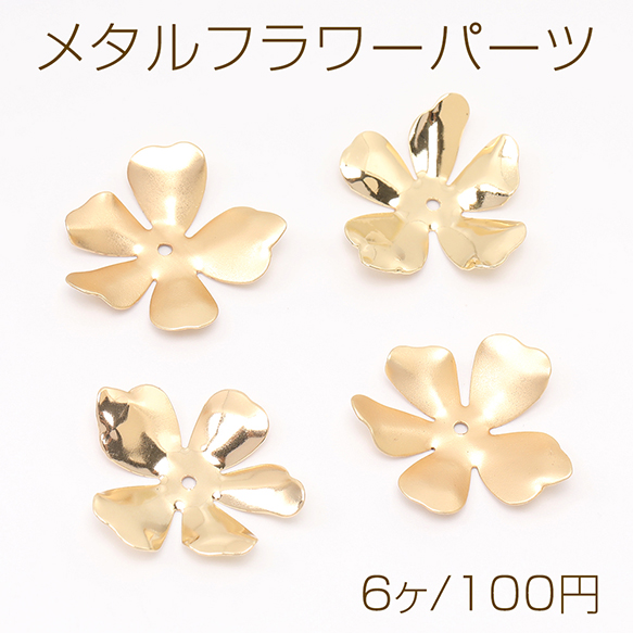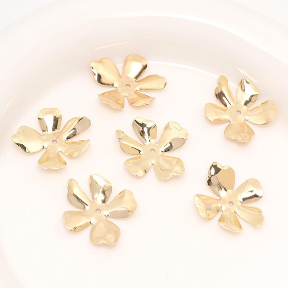 メタルフラワーパーツ 五弁花 ビーズキャップパーツ メタル花座パーツ 座金 フラワーチャームパーツ 20×26mm(6ヶ)