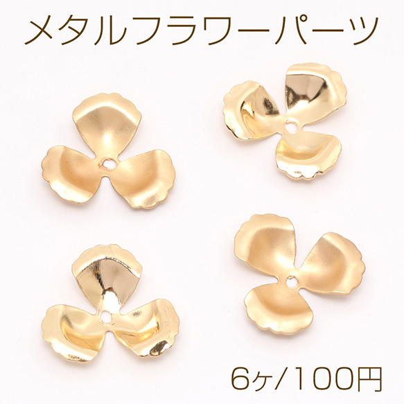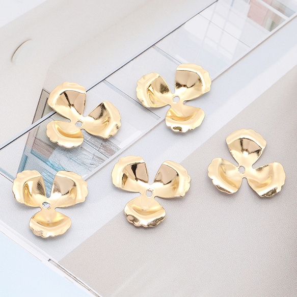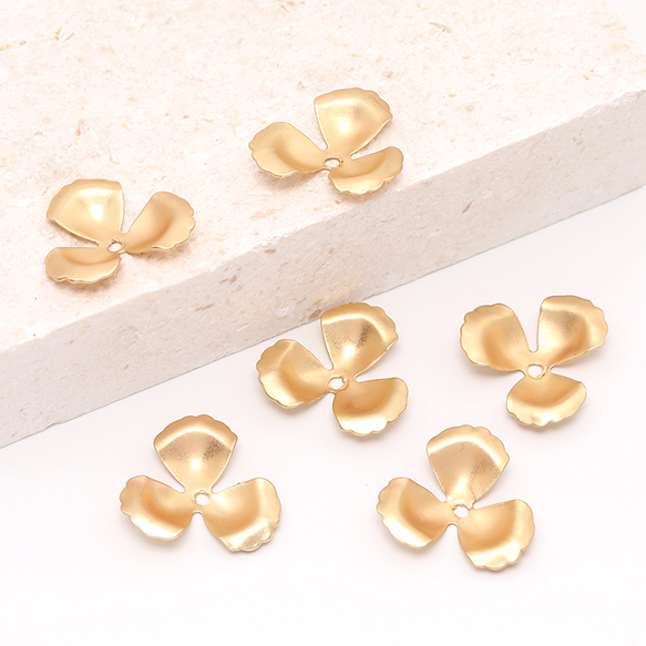 メタルフラワーパーツ 三弁花 ビーズキャップパーツ メタル花座パーツ 座金 フラワーチャームパーツ 19mm(6ヶ)