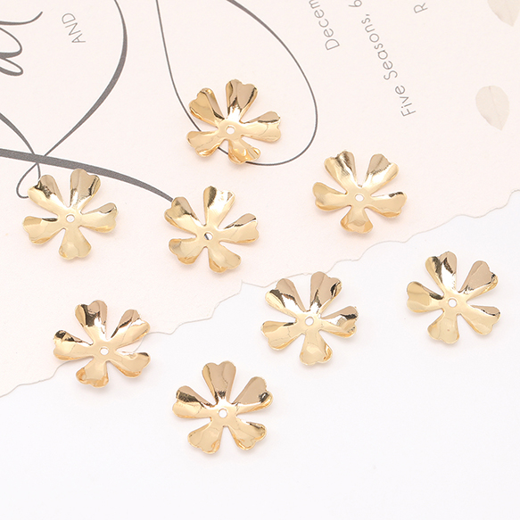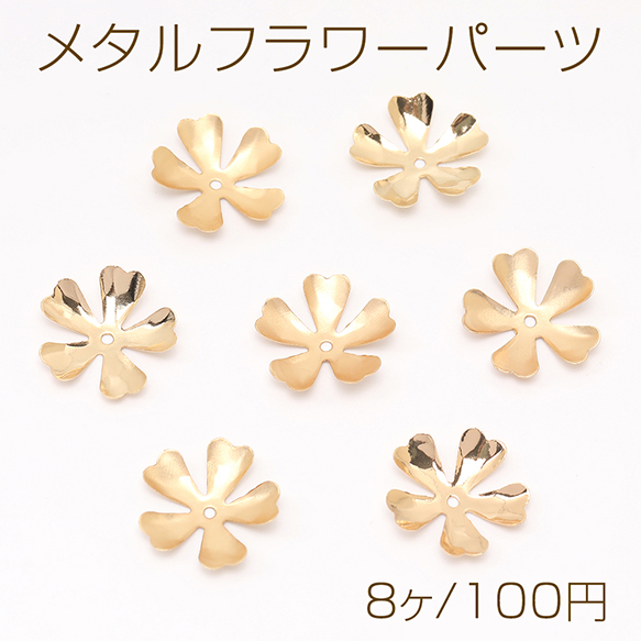 メタルフラワーパーツ 五弁花 ビーズキャップパーツ メタル花座パーツ 座金 フラワーチャームパーツ 16mm(8ヶ)