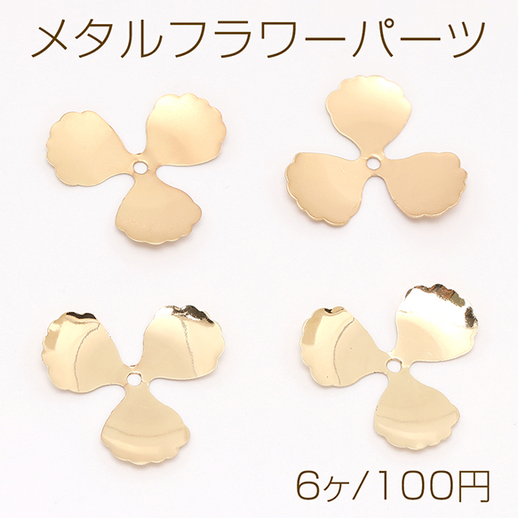 メタルフラワーパーツ 三弁花 ビーズキャップパーツ メタル花座パーツ 座金 フラワーチャームパーツ 20mm(6ヶ)
