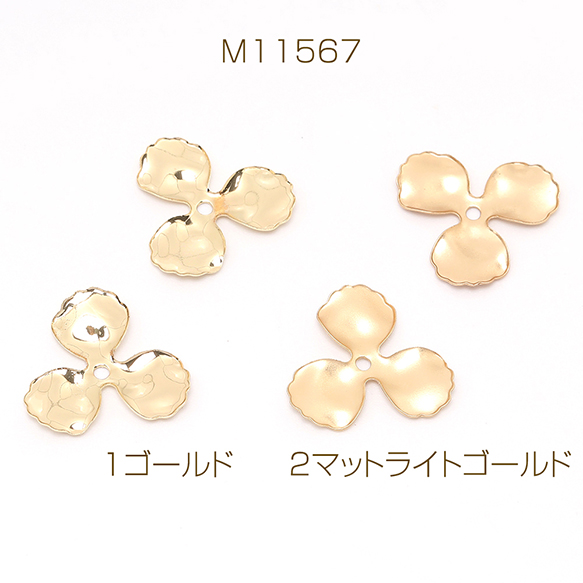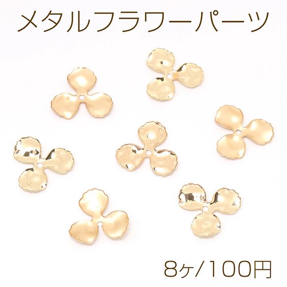 メタルフラワーパーツ 三弁花 ビーズキャップパーツ メタル花座パーツ 座金 フラワーチャームパーツ 14mm(8ヶ)