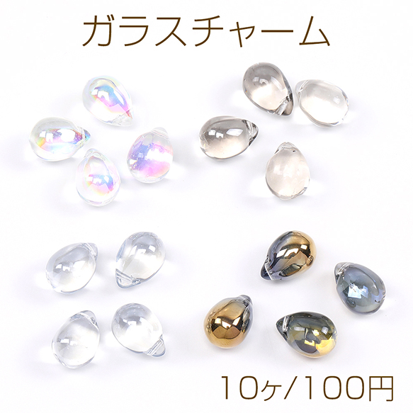 ガラスチャーム しずく型 横穴 9.5×13.5mm(10ヶ)