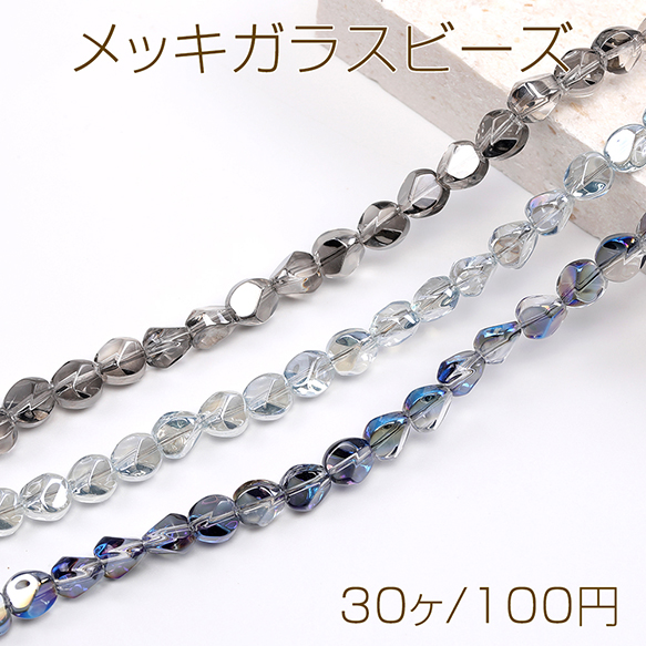 メッキガラスビーズ 不規則型 縦穴 7×7.5mm(30ヶ)