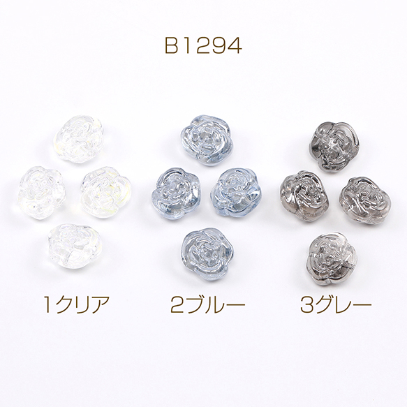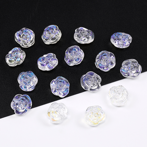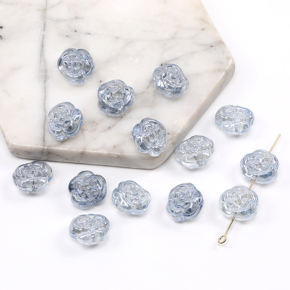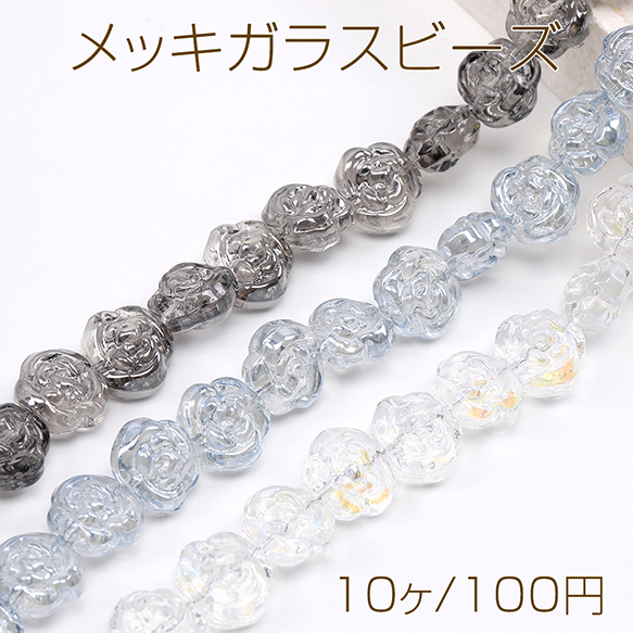 メッキガラスビーズ フラワー バラ 縦穴 12.5×14mm(10ヶ)