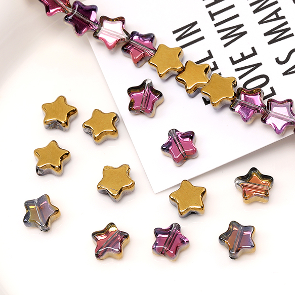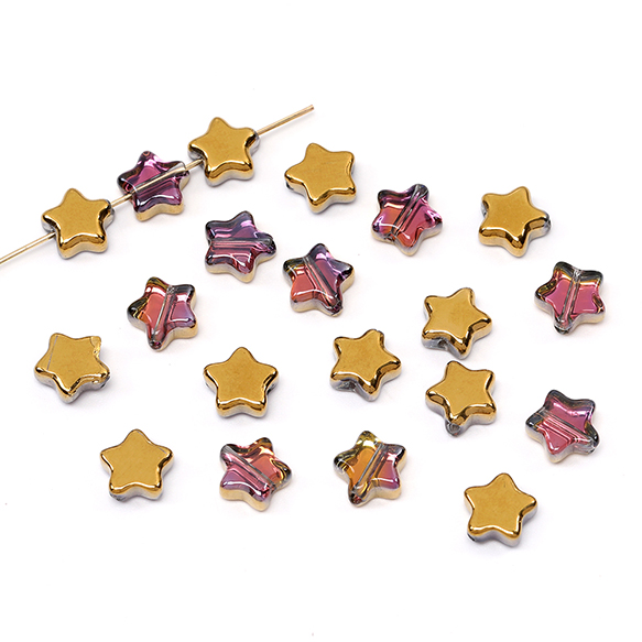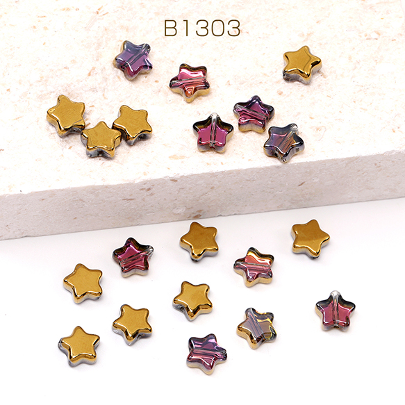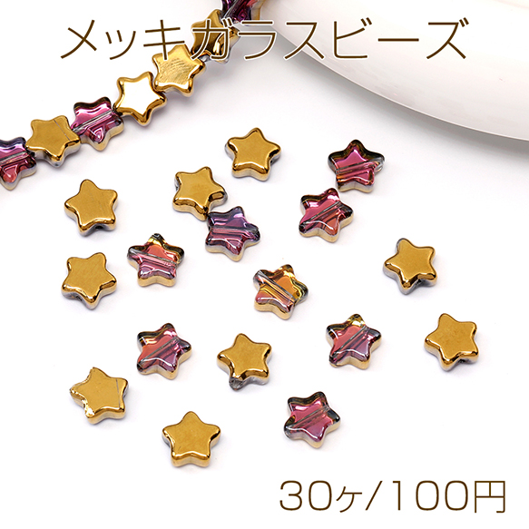 メッキガラスビーズ 星形 縦穴 8.5mm パープル×ゴールド(30ヶ)