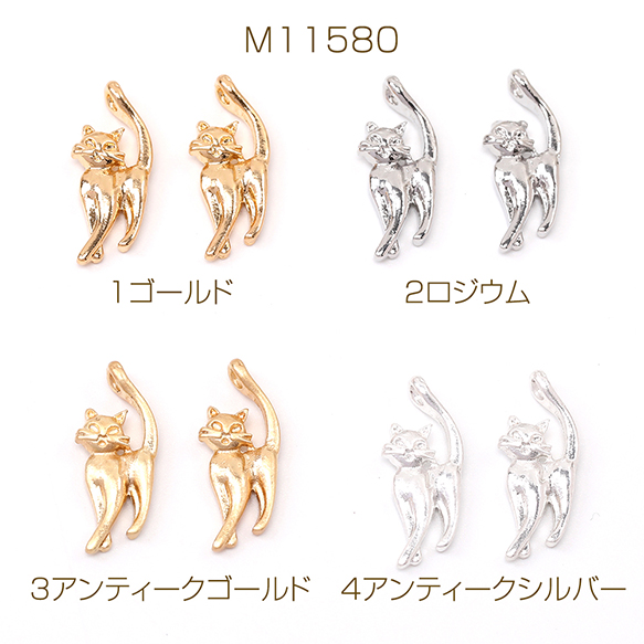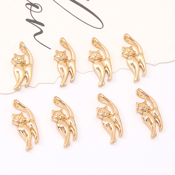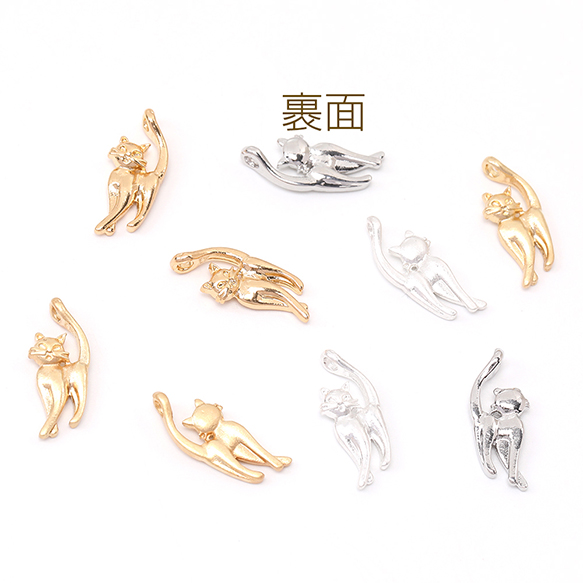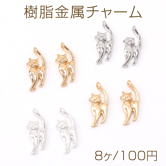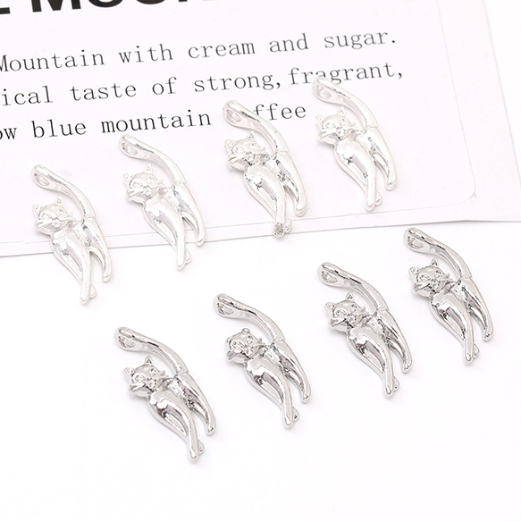 立体メタルチャーム 猫 7.5×18mm(8ヶ)