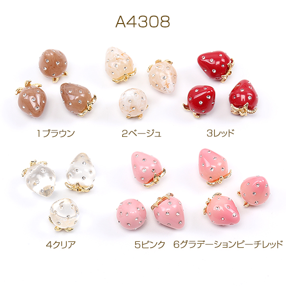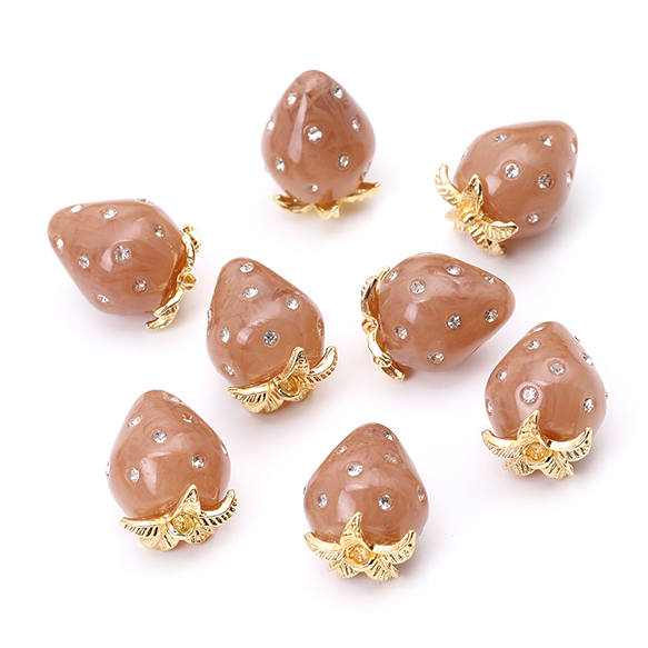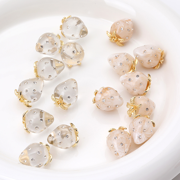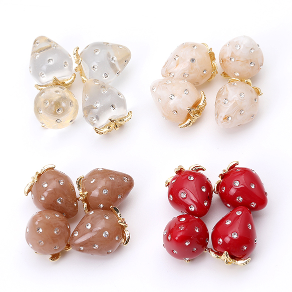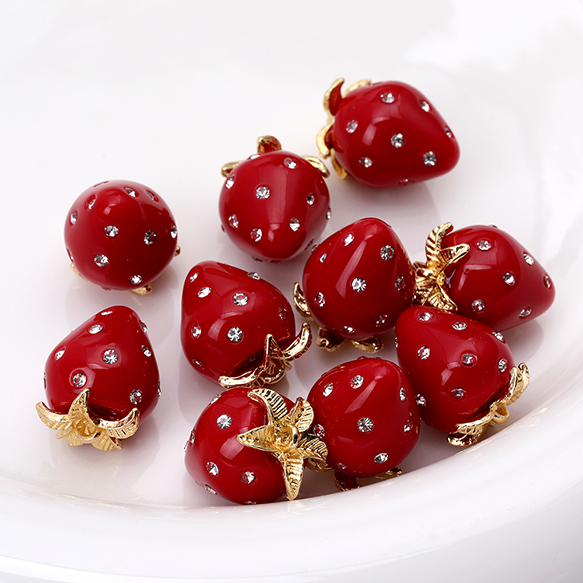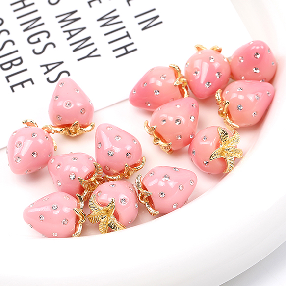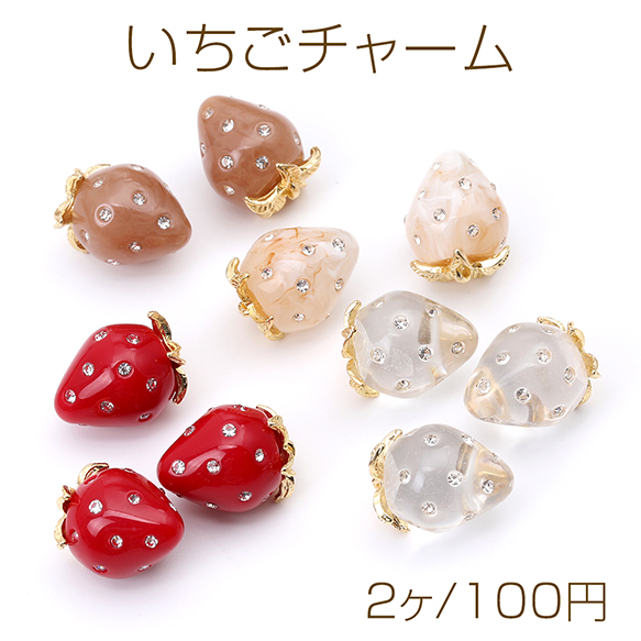 いちごチャーム 樹脂製イチゴチャーム かわいいフルーツチャーム 苺チャーム ラインストーン付き 12×16mm(2ヶ)
