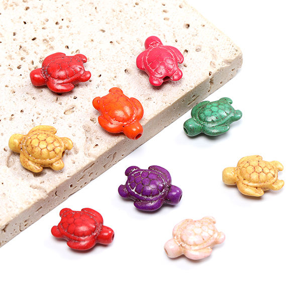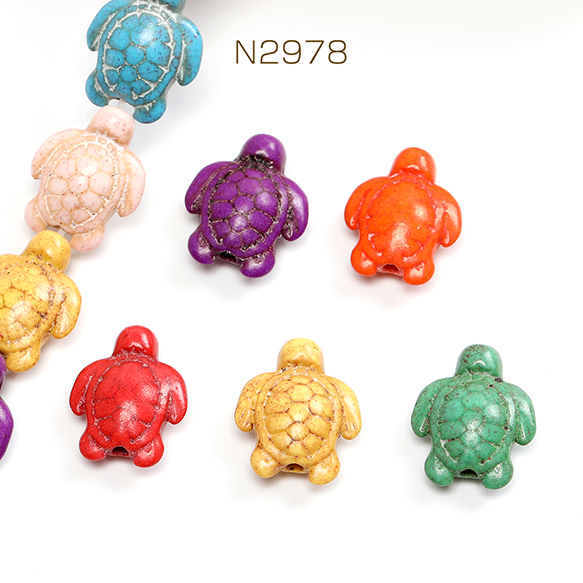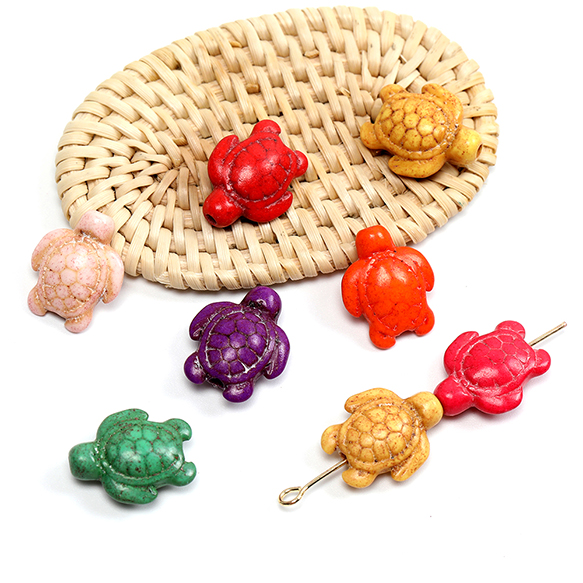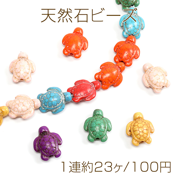 天然石ビーズ 合成ターコイズ カメ 13.5×16.5mm ミックスカラー(1連約23ヶ)