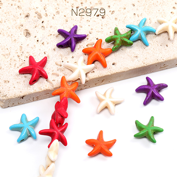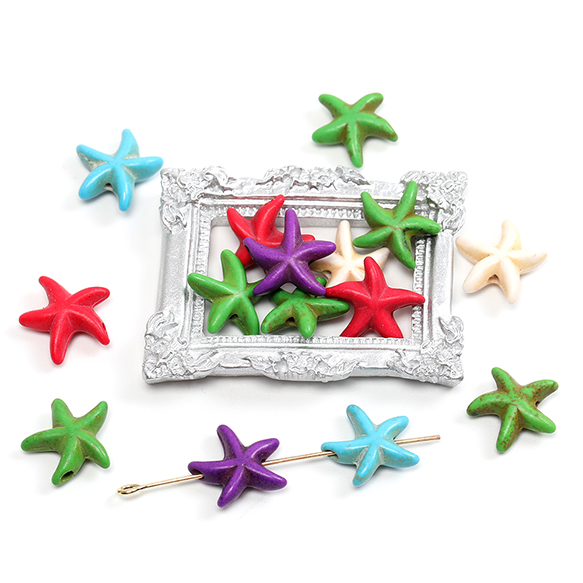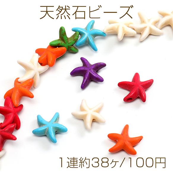 天然石ビーズ 合成ターコイズ ヒトデ 13.5×14mm ミックスカラー(1連約38ヶ)