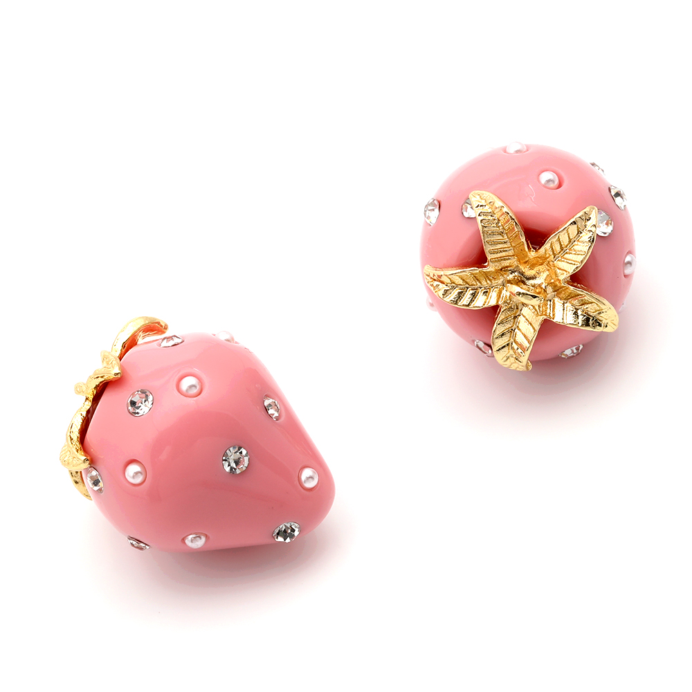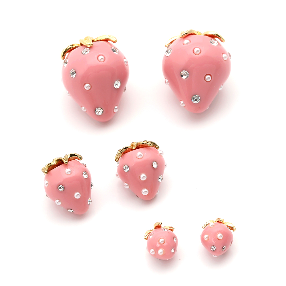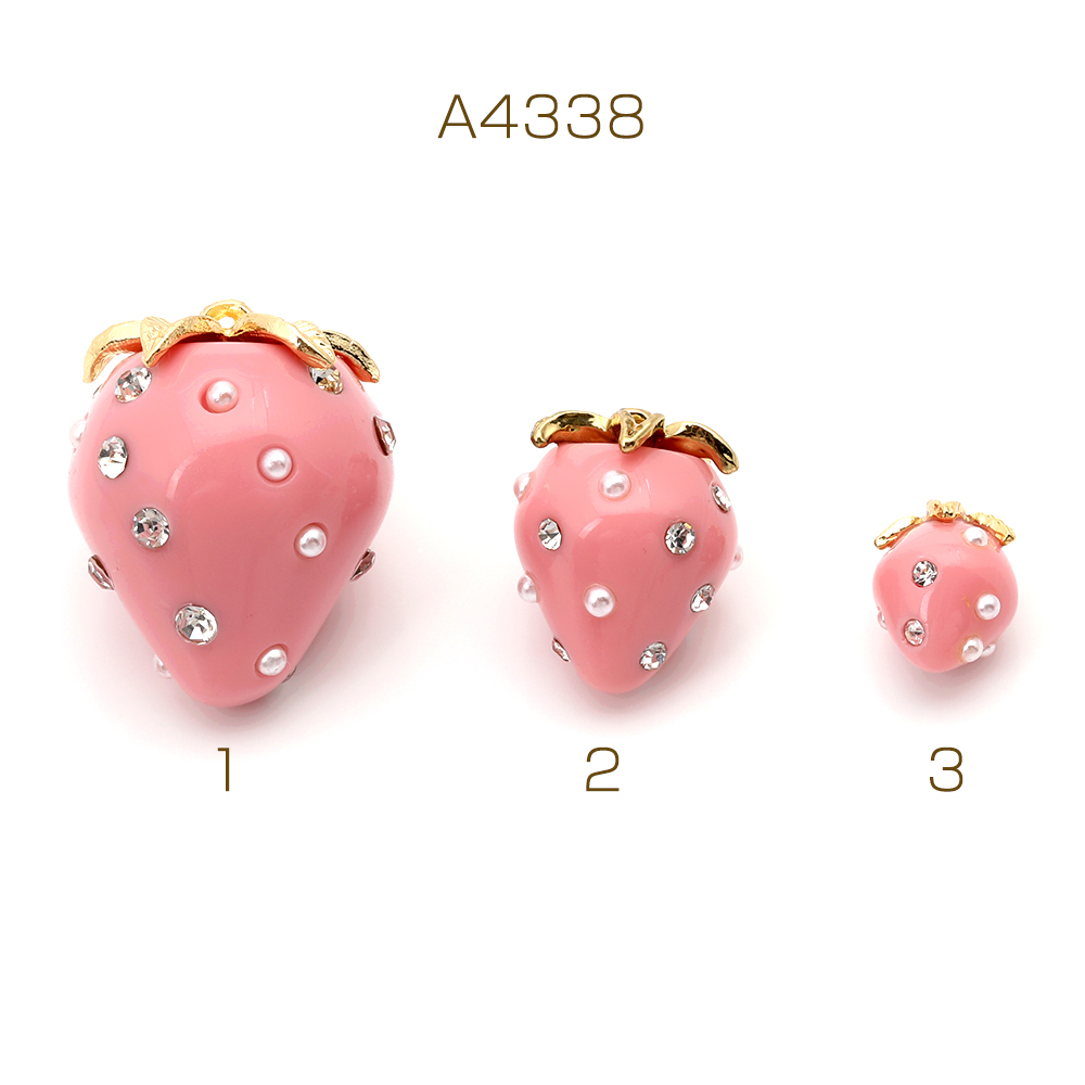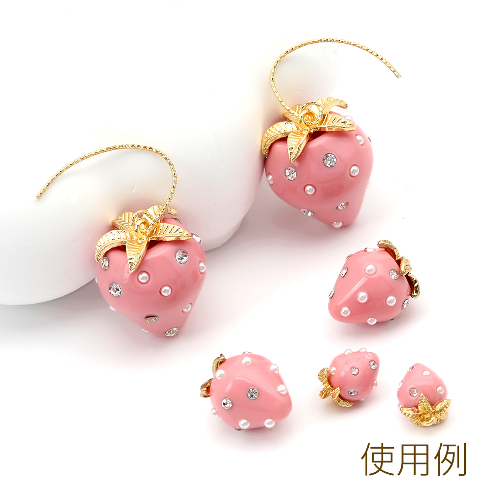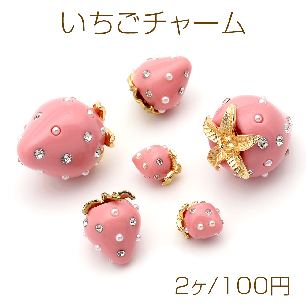 いちごチャーム 樹脂製イチゴチャーム かわいいフルーツチャーム 苺チャーム パール&ラインストーン付き ゴールド×ピンク