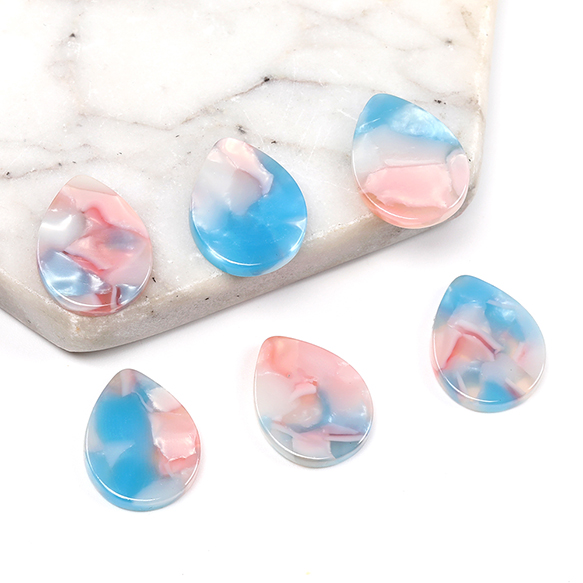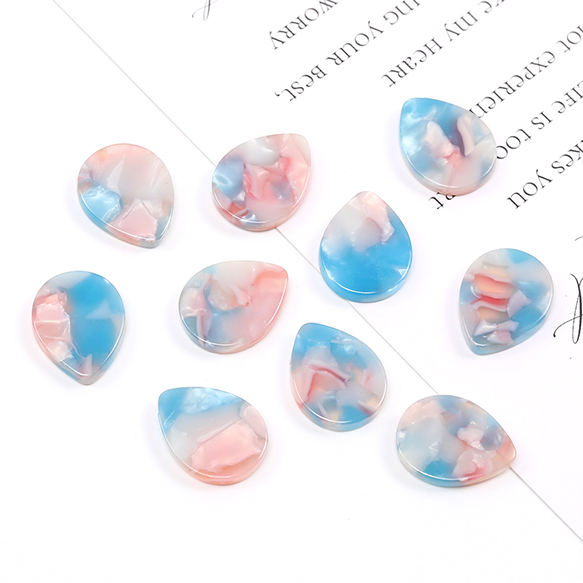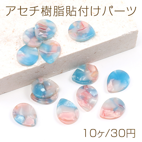 アセチ樹脂貼付けパーツ アセチ樹脂カボション しずく型 13×17mm ブルー×ピンク(10ヶ)