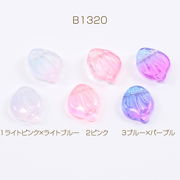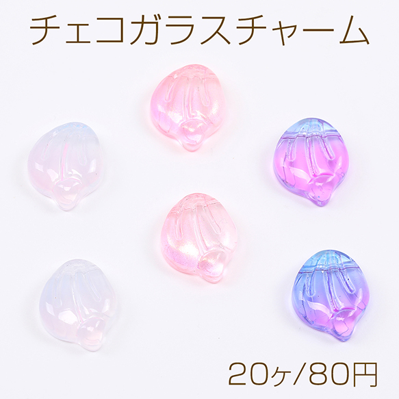 チェコガラスチャーム 花びら 横穴 12×15mm グラデーションカラー(20ヶ)