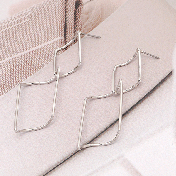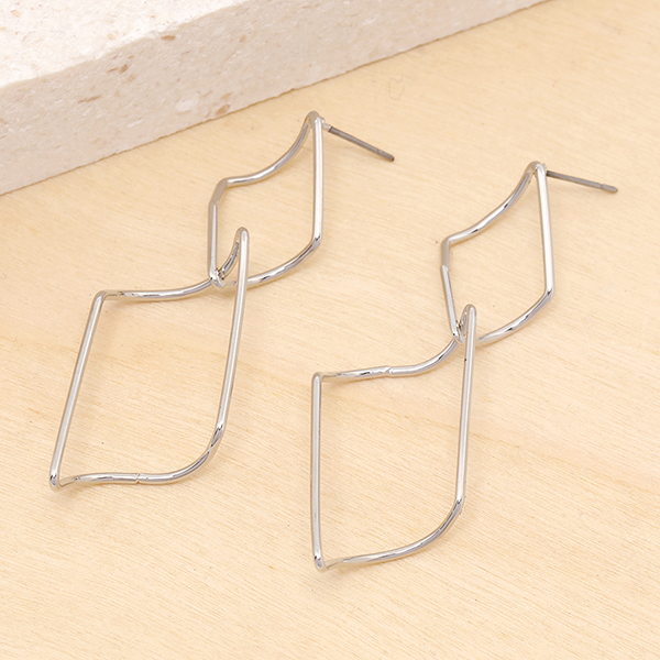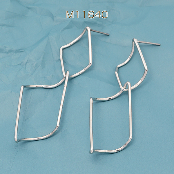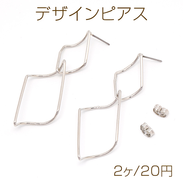 デザインピアス 2連ひし形 23×55mm ロジウム(2ヶ)