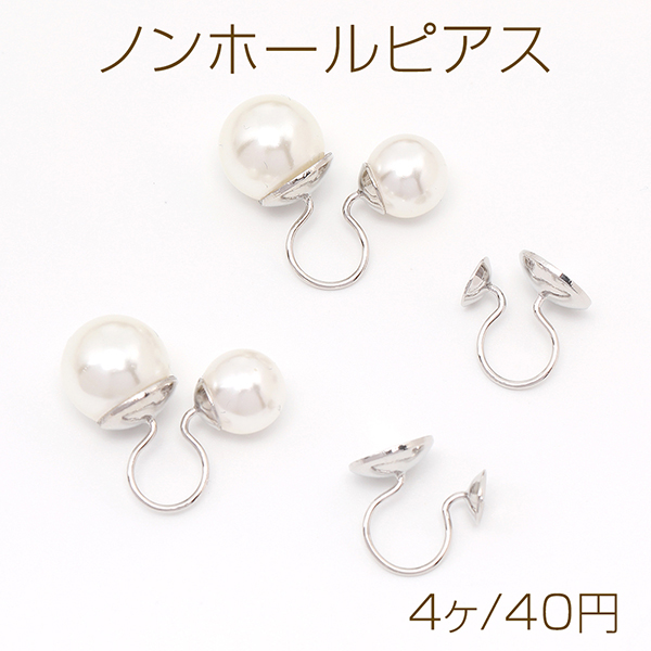 ノンホールピアス 芯立丸皿 5mm&8mm ロジウム(4ヶ)