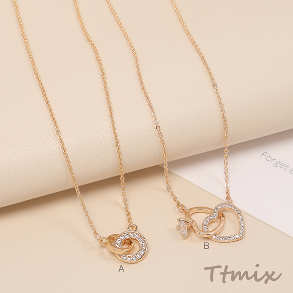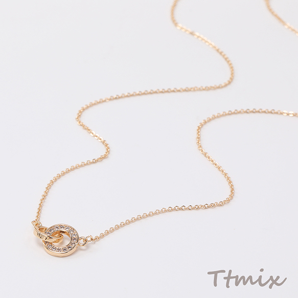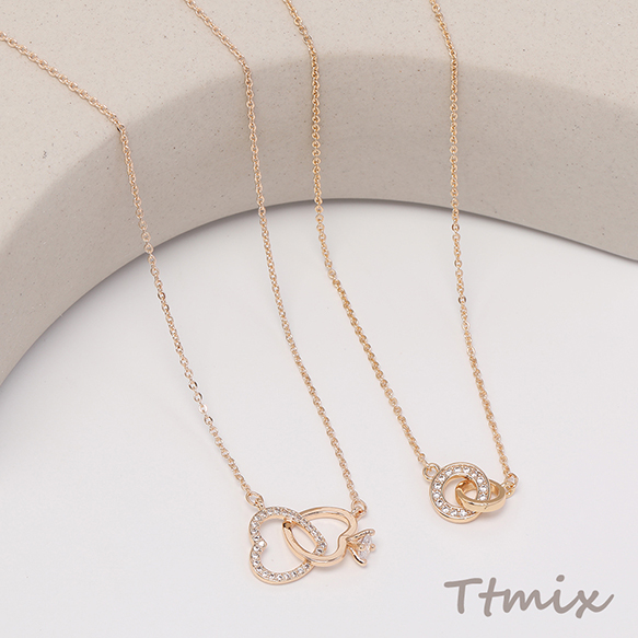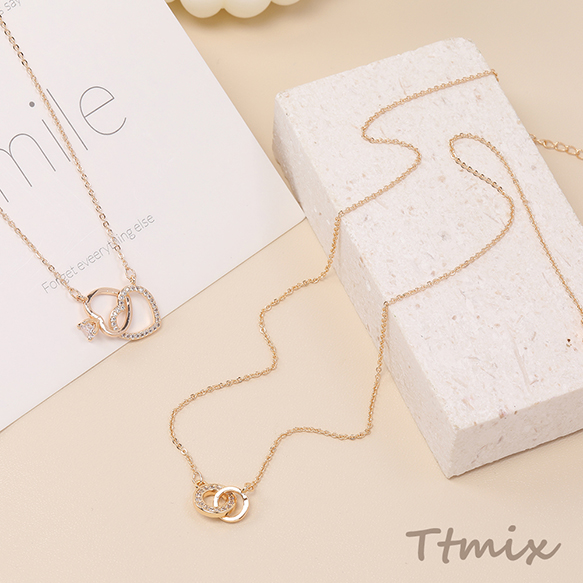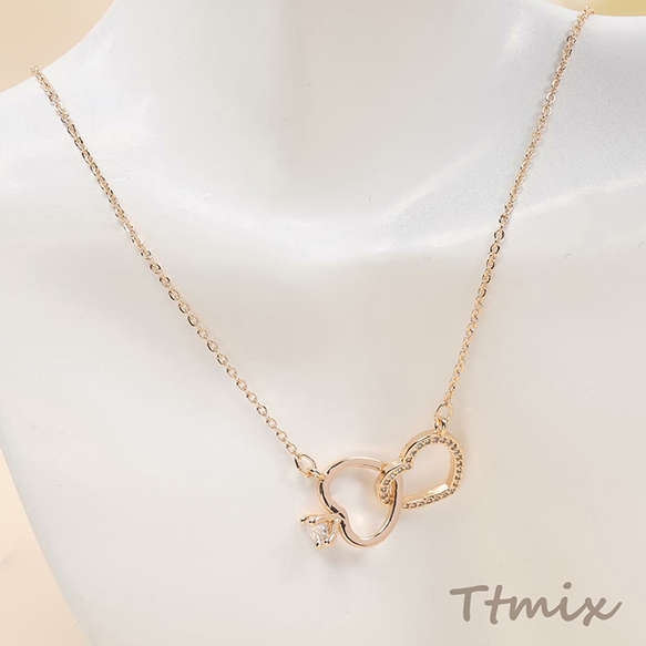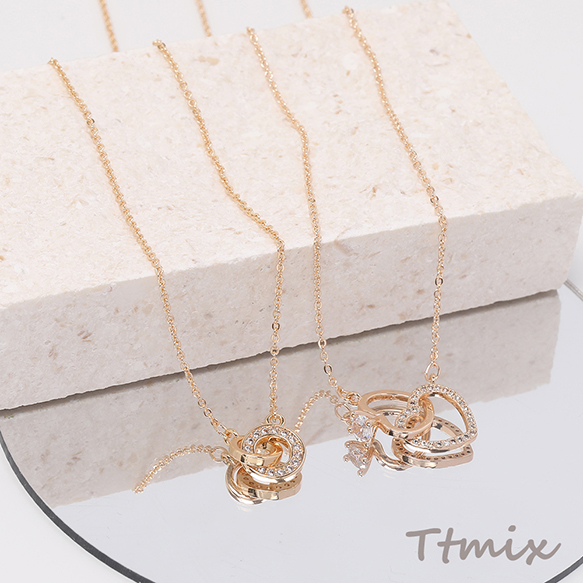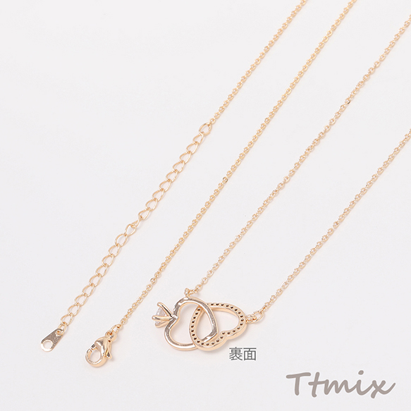 ネックレス 2連サークル 2連ハート ジルコニア付き ゴールド