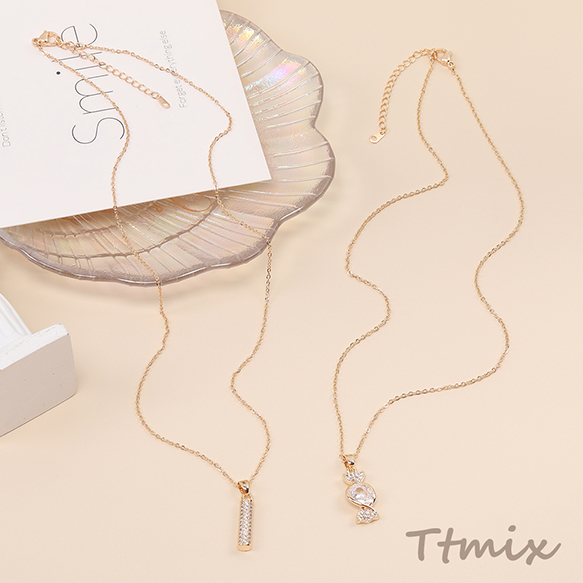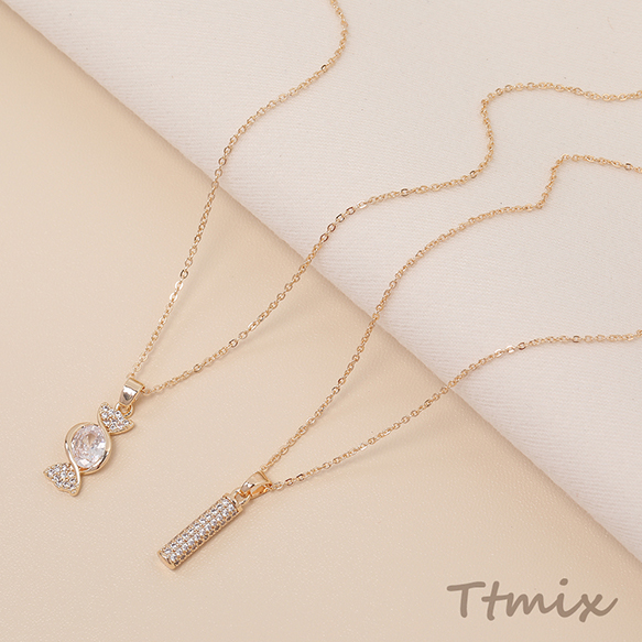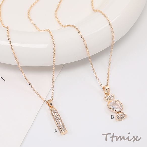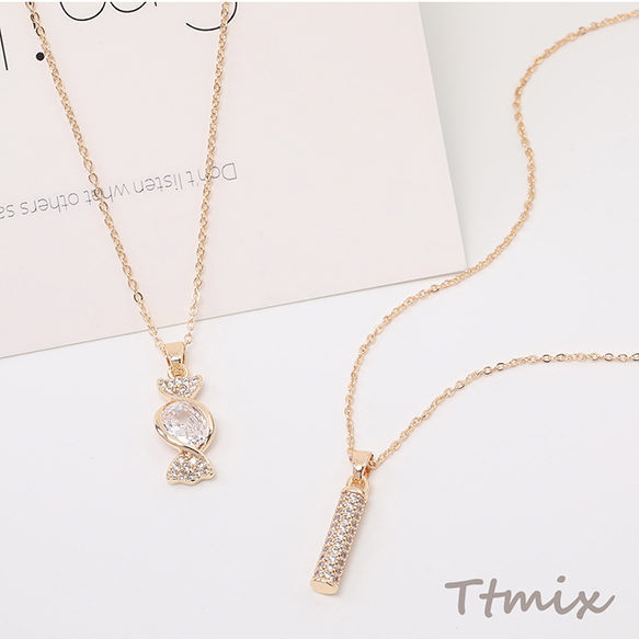 ネックレス スティック キャンディー ジルコニア付き ゴールド