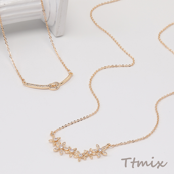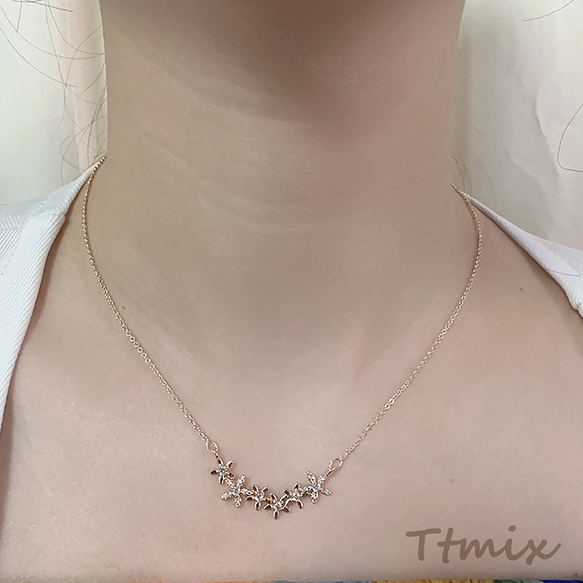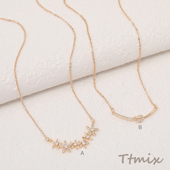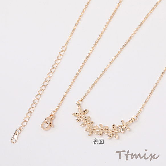 ネックレス 6連フラワー 結び目 ジルコニア付き ゴールド