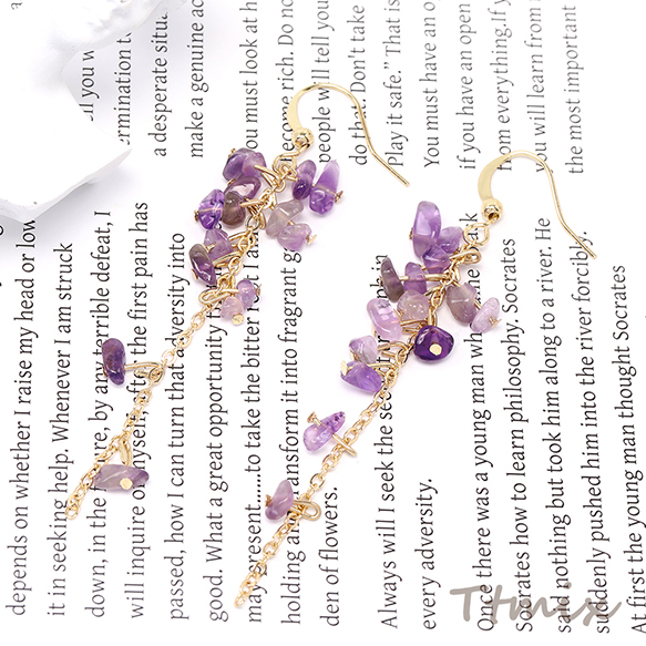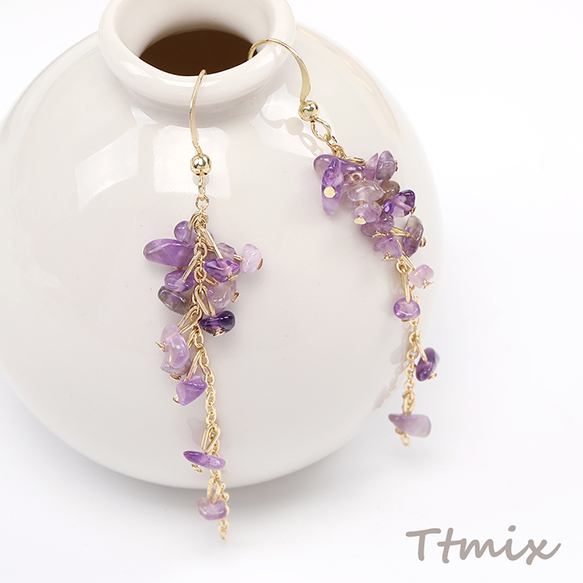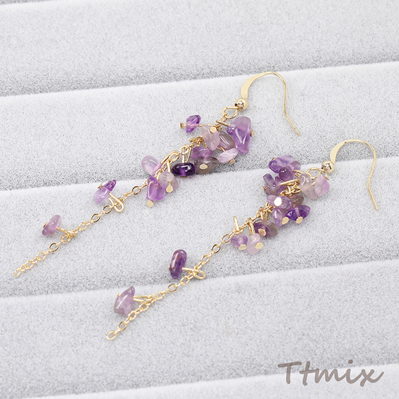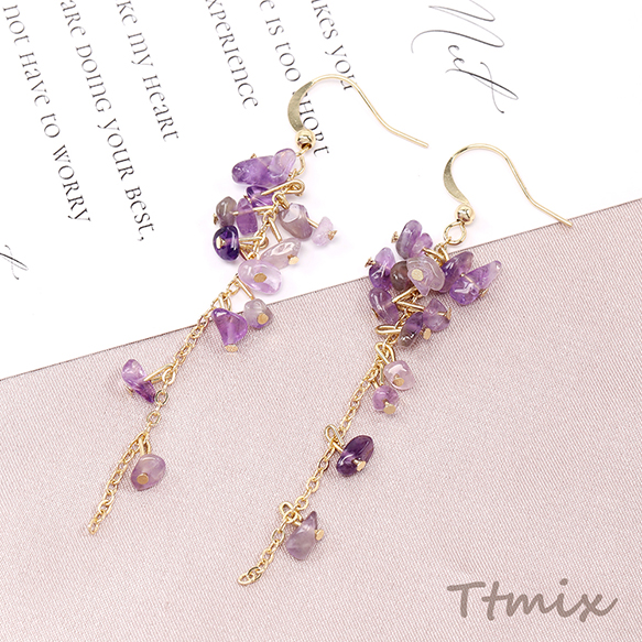 デザインフックピアス アメジストのフックピアス 6cm(1ペア)