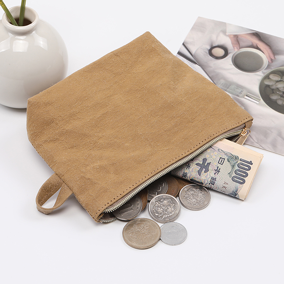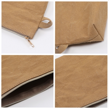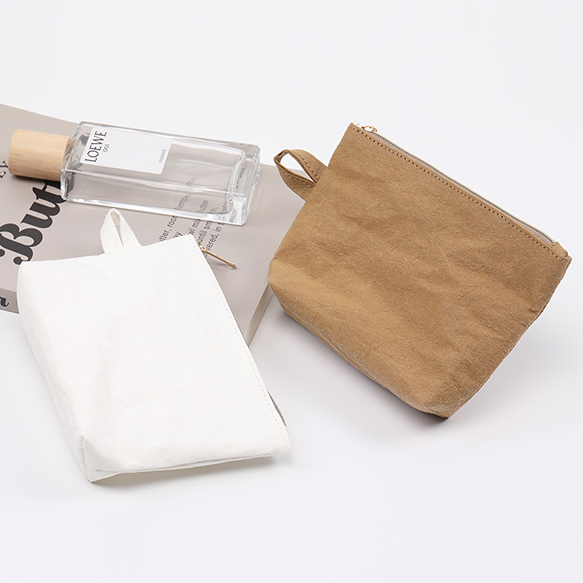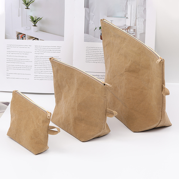 洗えるクラフト紙コスメバッグ 防水 収納ポーチ 4×10×10×15cm(1ヶ)