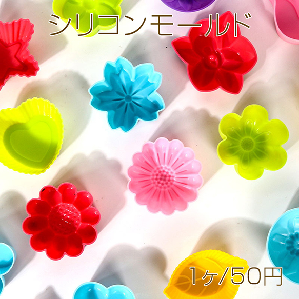 シリコンモールド ハート 花型 星型 カラーミックス(1ヶ)