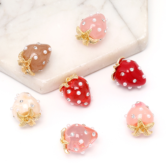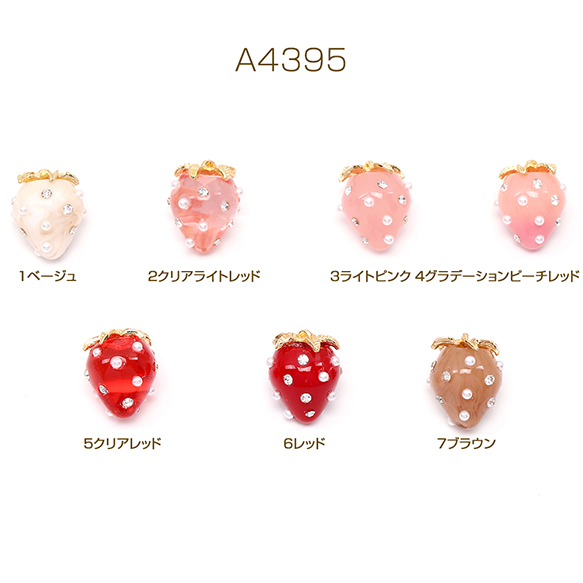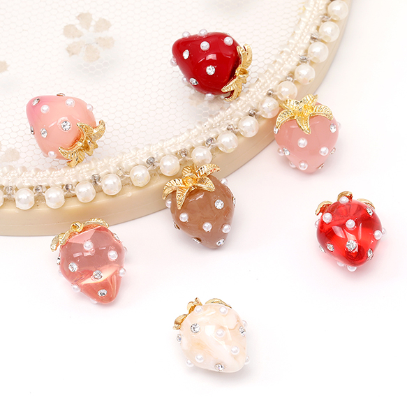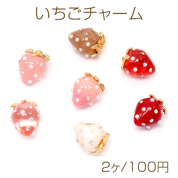 いちごチャーム 樹脂製イチゴチャーム かわいいフルーツチャーム 苺チャーム パール&ラインストーン付き ゴールド 12×16mm(2ヶ)