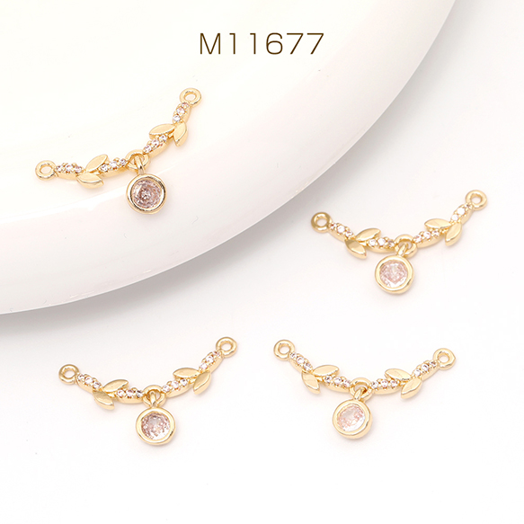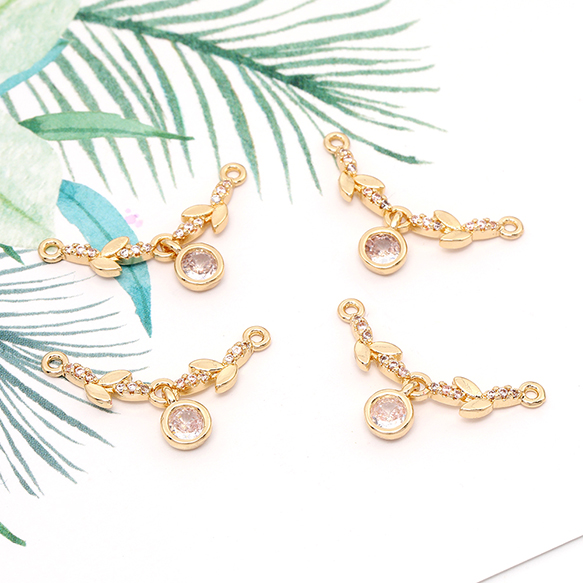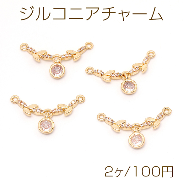 ジルコニアチャーム 2カン付き ゴールド 25×5.5mm(2ヶ)