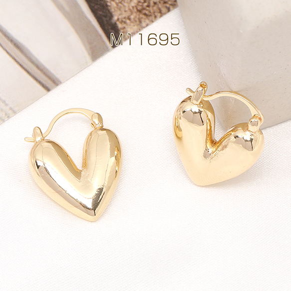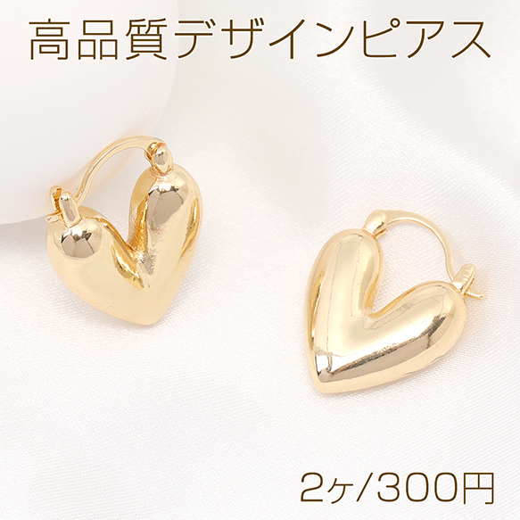 高品質デザインピアス ハートのピアス 17×21mm ゴールド(2ヶ)