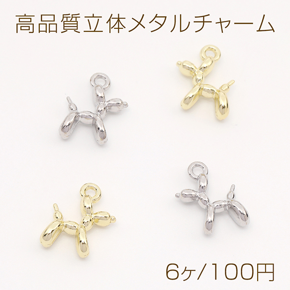 高品質立体メタルチャーム 犬 1カン 11×14mm(6ヶ)