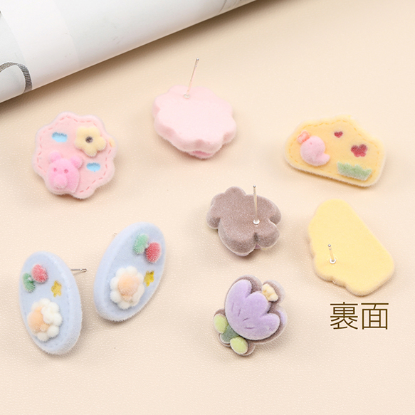 素材:貼付部→フロッキー、アクリル製 ピアスポスト→シルバー925製